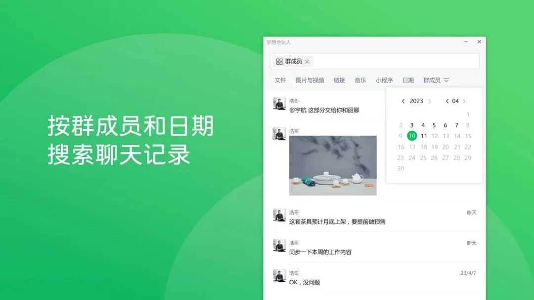 微信 Windows 平台迎来了 3.9.6 正式版更新,官方更新日志为:可以按群成员和日期搜索聊天记录。