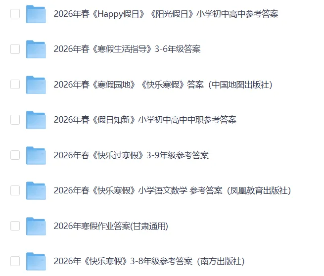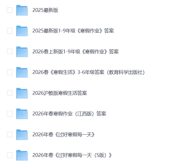2025-2026最新版1-9年级《寒假作业》答案(完整电子版pdf) 温馨提示:长按链接“搜一搜“即可打开,文末可快捷跳转⬇️ 合集链接: 2026年寒假各版本作业答案 https://pan.quark.cn/s/d5905c98d4a2 资料展示: 声明:本公众号分享的资源来源于网络收集,均为免费公益性分享,仅供学习使用,请勿用于商业用途。所有文件版权归原作者所有,如有侵权请在后台私信管理员,我们看到后会尽快处理。 点下方“阅读原文”获取网盘下载地址(自助下载)