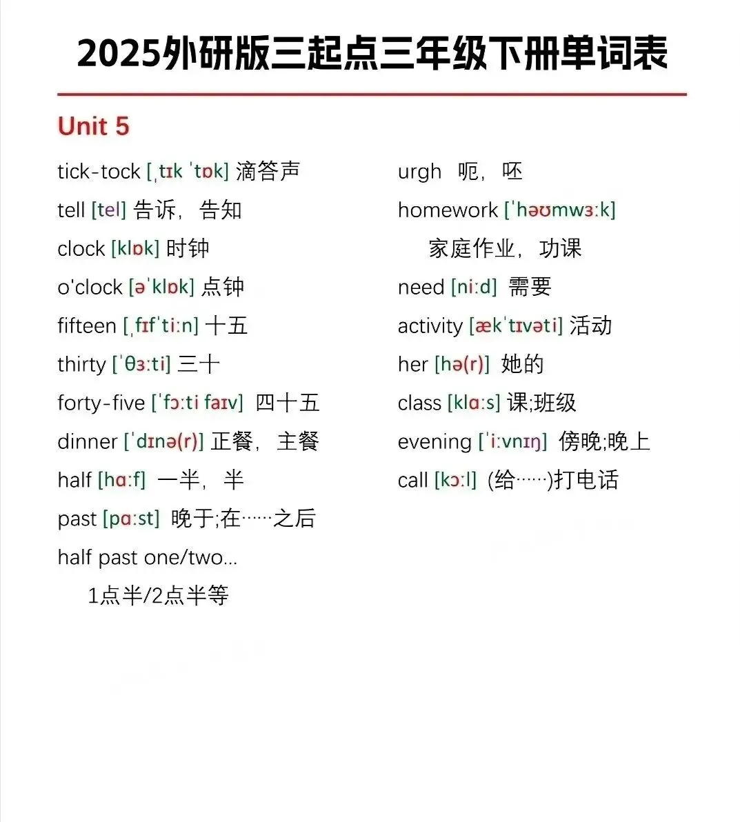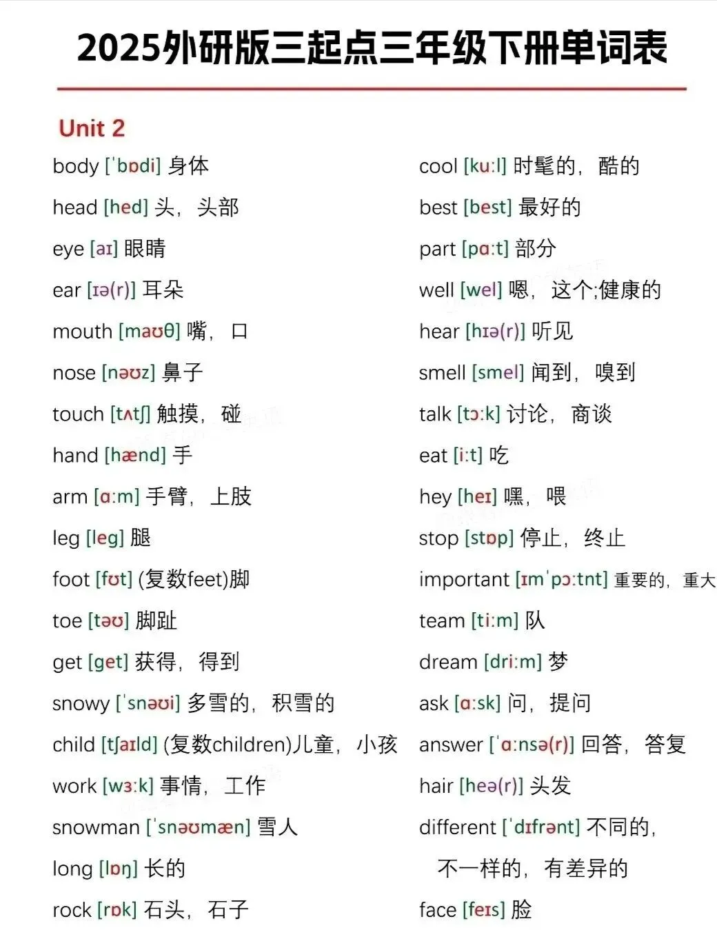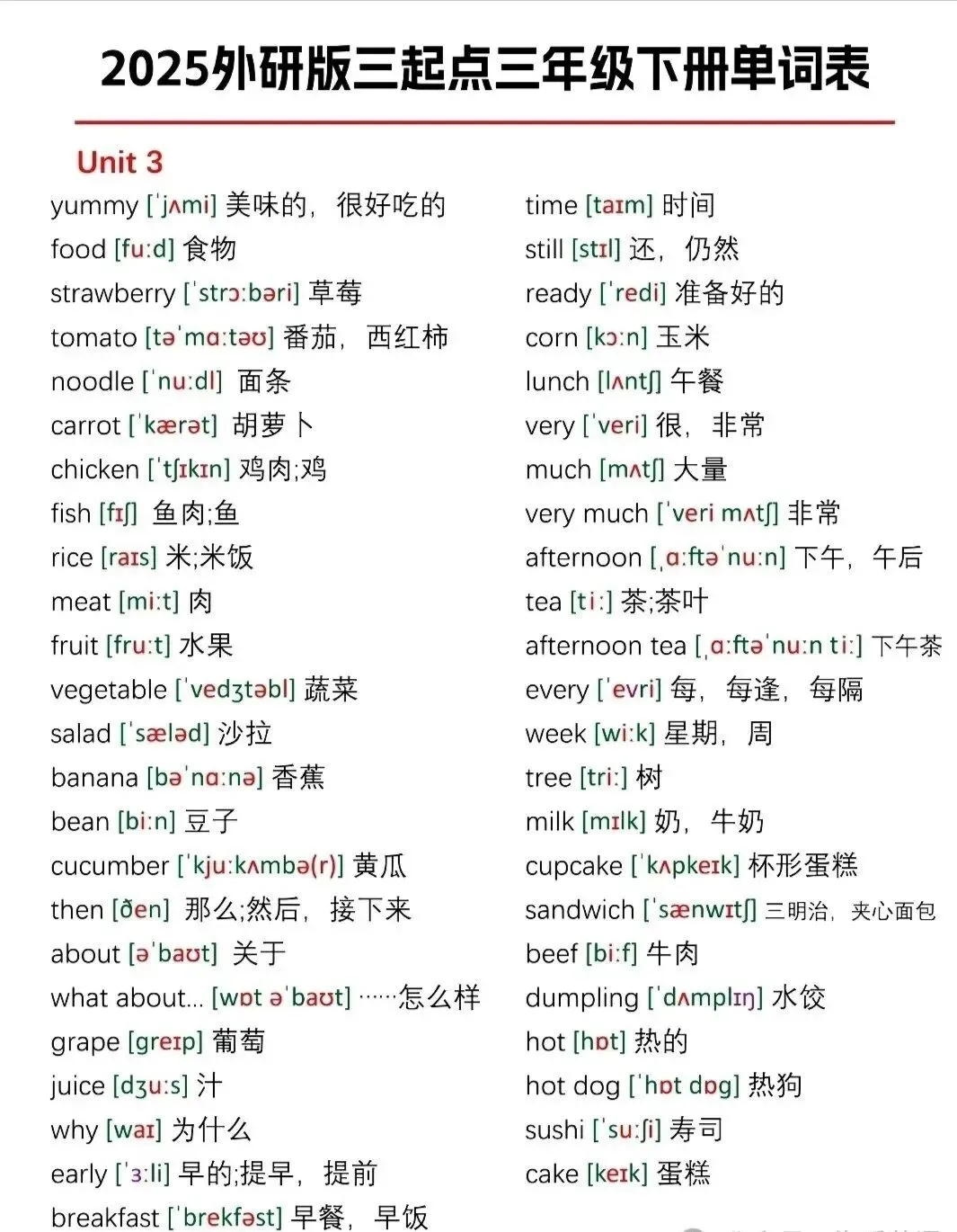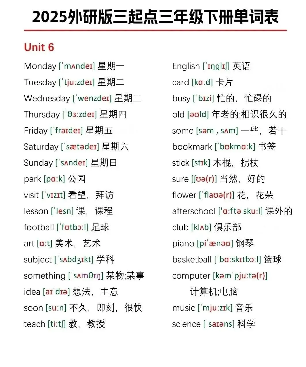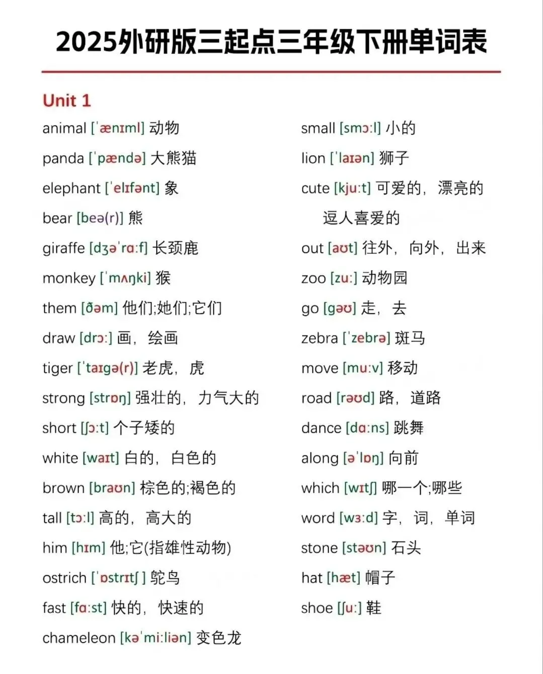 今日分享:2026春|(外研版)英语三年级下册《Unit1-Unit6单词跟读+听力音频》电子版可打印四年级的家长们注意啦!这份2026外研版三起点下册单词表,电子版可打印,内容很全!从Unit1-Unit6,每个单元的课后单词都有,包括音标和中文翻译。可以采用看中文写英文,看英文写中文,看英文写音标或看音标写单词,等多种方式来巩固,轻松应对学习,电子版可打印