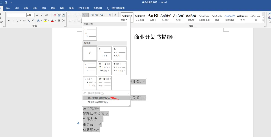 接着,在Word菜单栏中找到“多级列表”选项,点击后会出现一个下拉菜单。在这个菜单里,选择“定义新的多级列表”,随即进入编号设置界面。