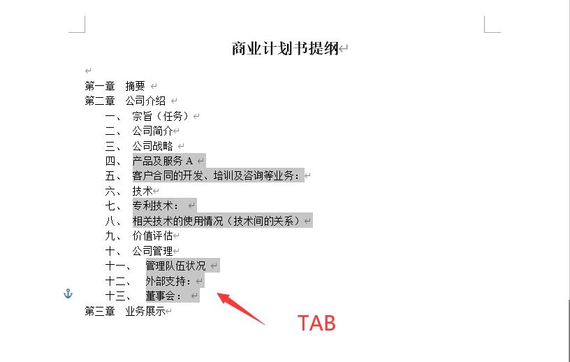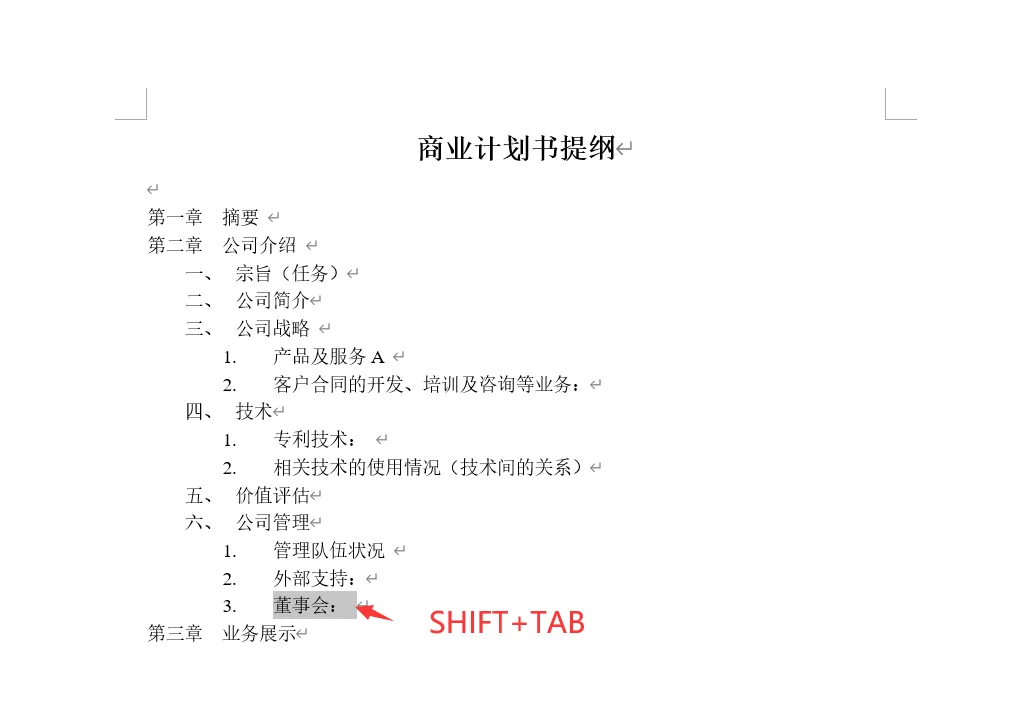 完成三个级别的编号样式设置后,就可以批量添加编号了。只需分别选中一、二、三级内容,按下TAB键,所有标题前就会自动添加对应的编号,无需再手动逐个添加,效率大幅提升。
