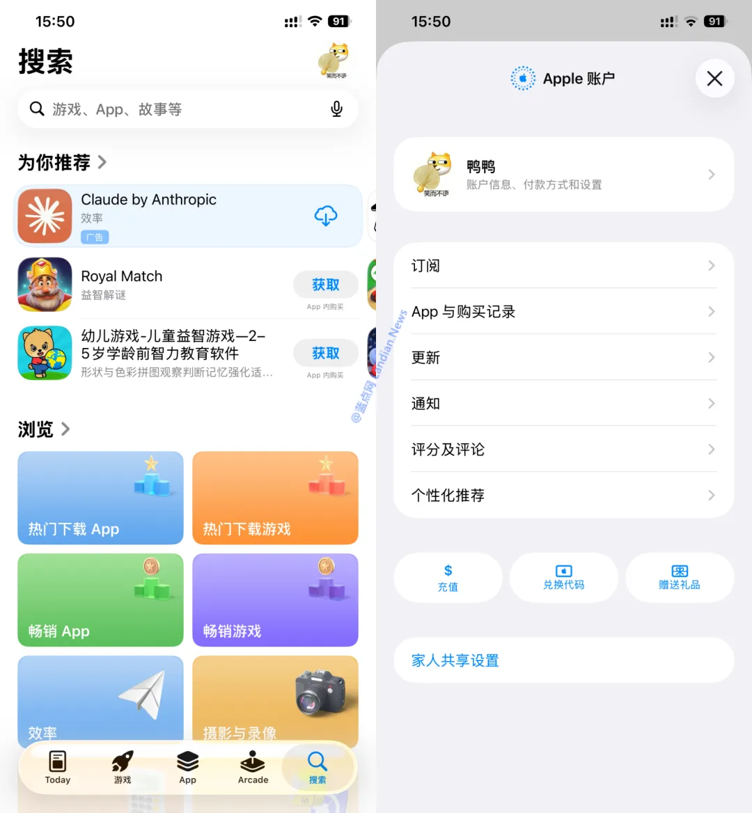 具体来说苹果更新 Apple App Store 账户页面增加其他选项例如充值和兑换等,但因为苹果没有预留退出按钮所以用户无法在应用商店里退出当前账户。