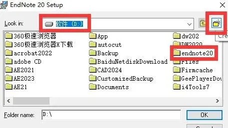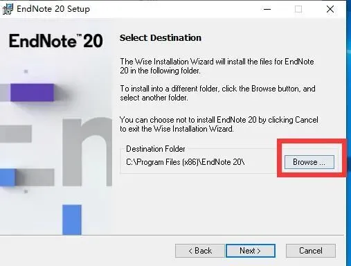 4、点Browse修改安装路径,比如我这里设置了D盘的endnote文件夹,这里切记一定要记住你的安装位置,一会需要回到这个位置。