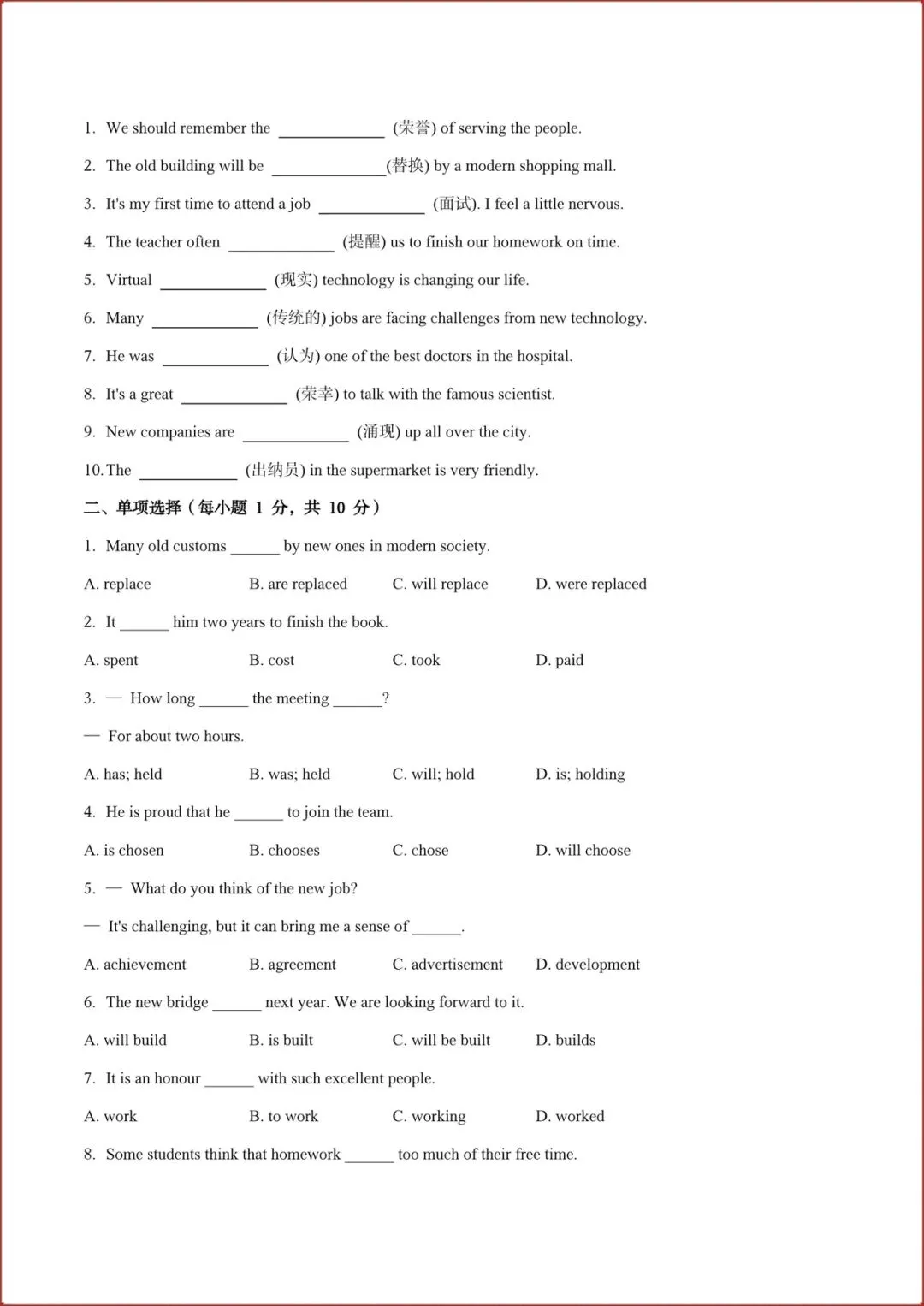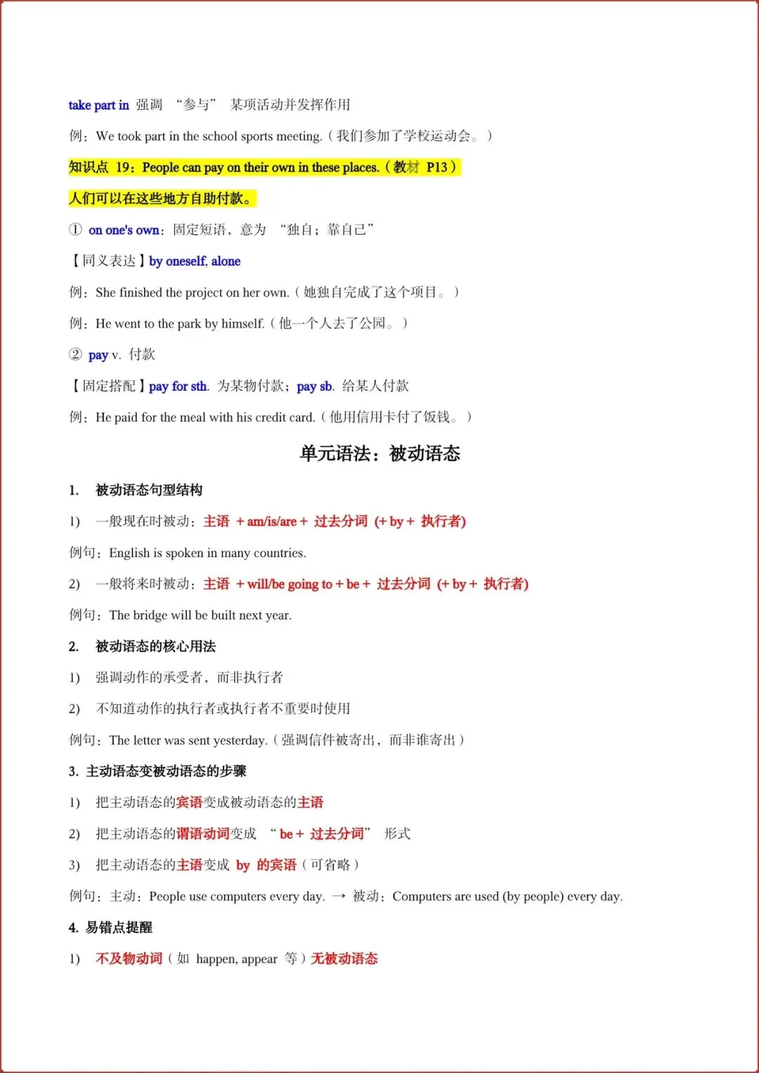 2026春新(外研版)八年级下册英语复习讲义(Unit 1-Unit 6全),电子版可打印!
