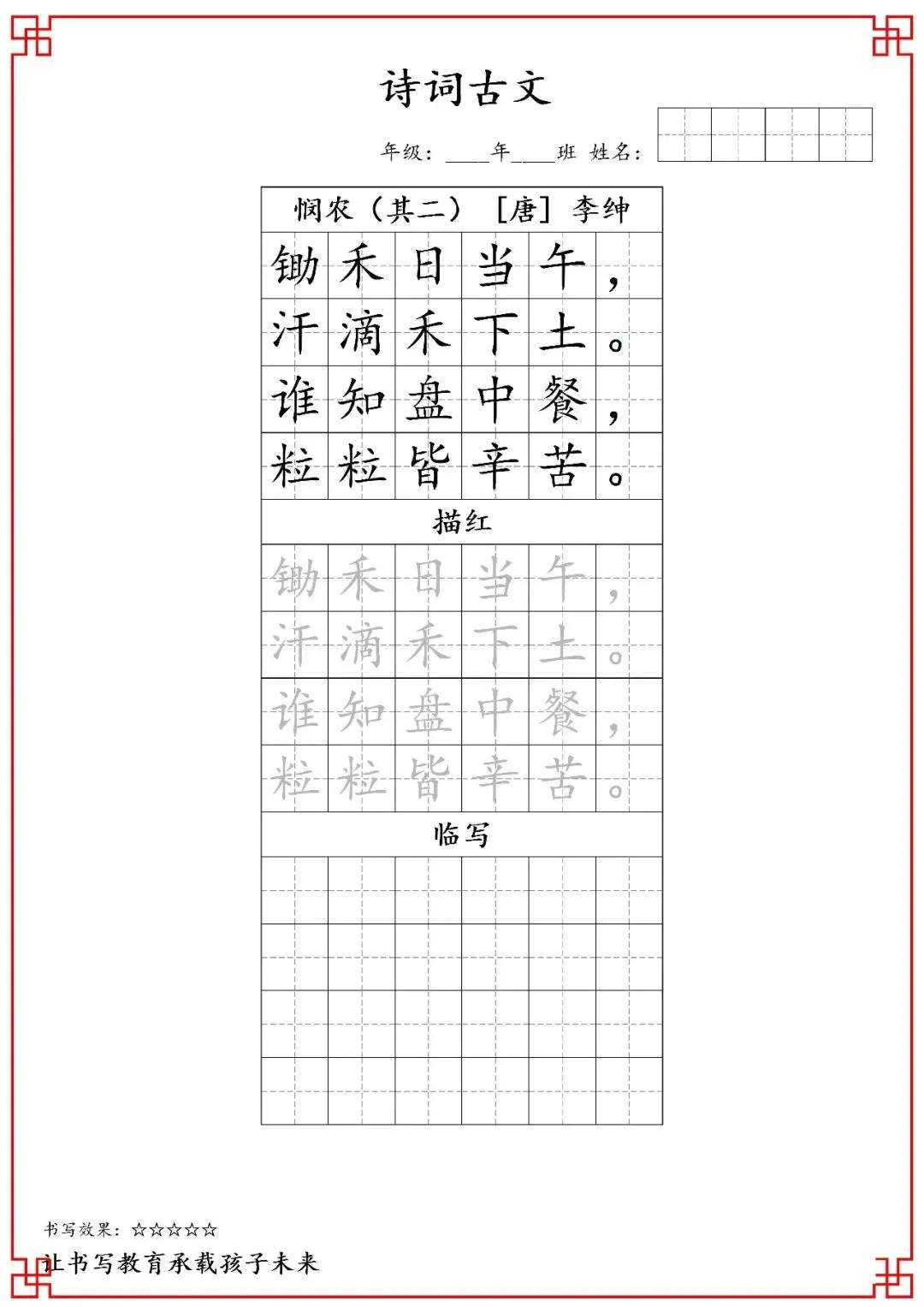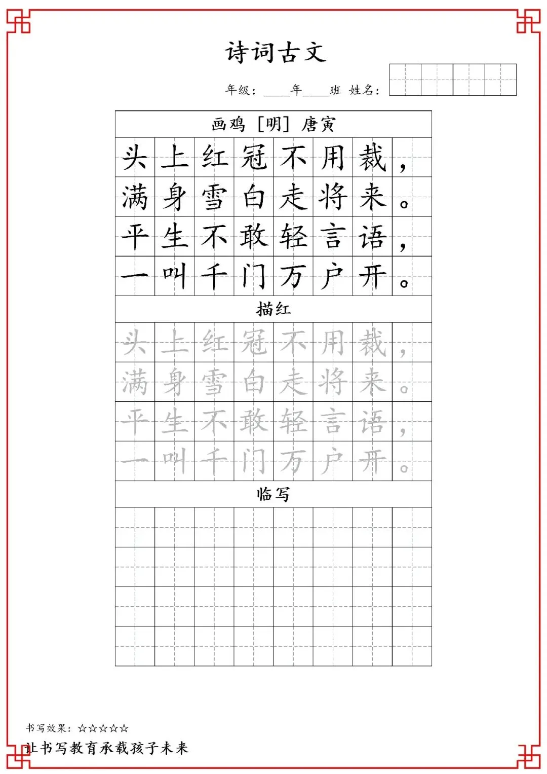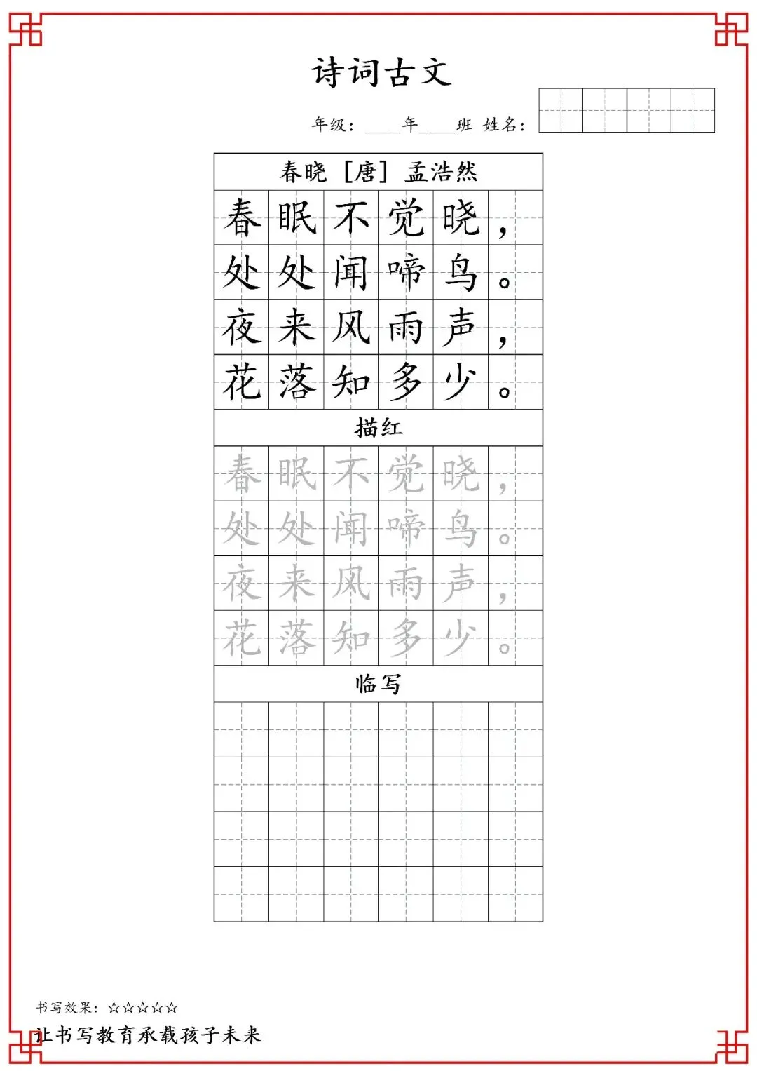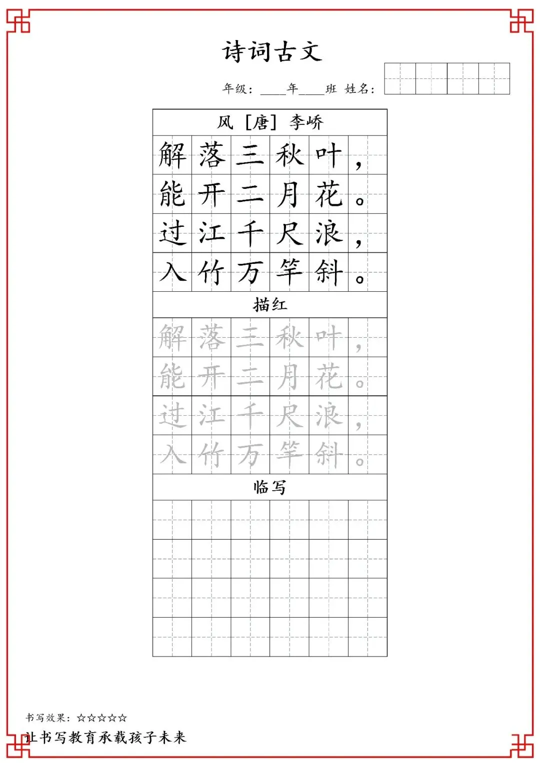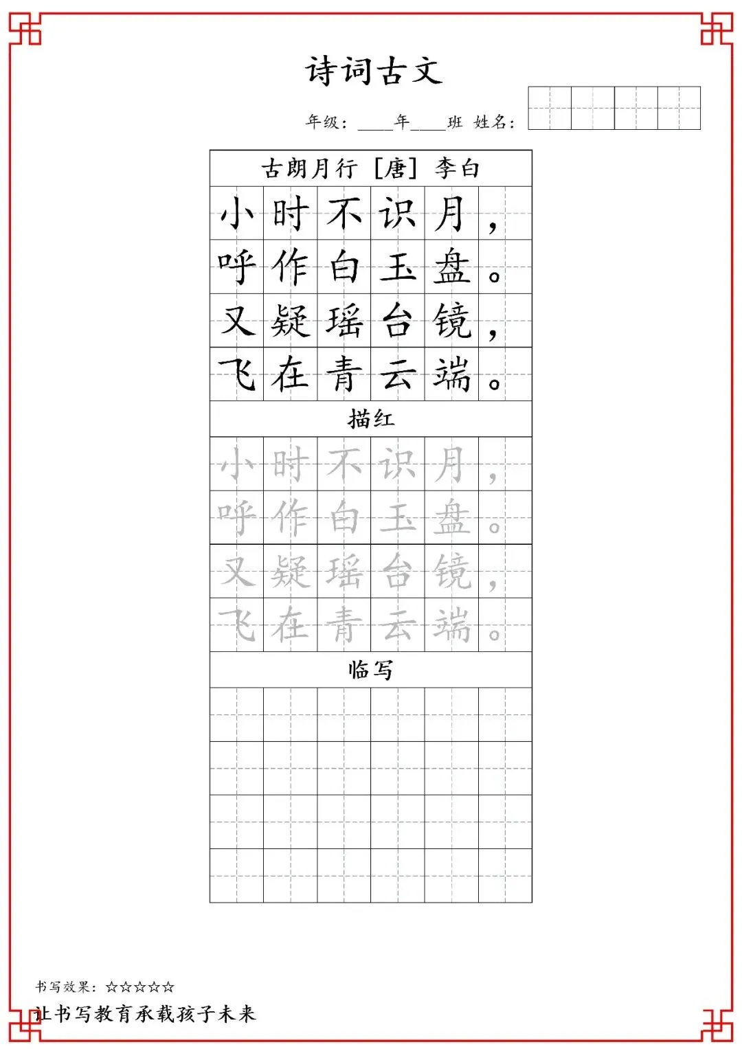 一年级古诗词字帖(含电子打印版)