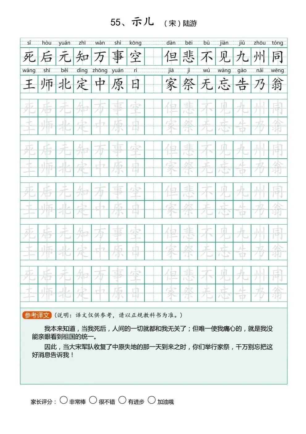 大家好,今天刘老师给大家整理了《小学生必背古诗文楷书字帖》。各位家长或者老师可以下载下来,打印给孩子!【建议老师转发到班级群】