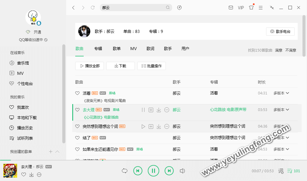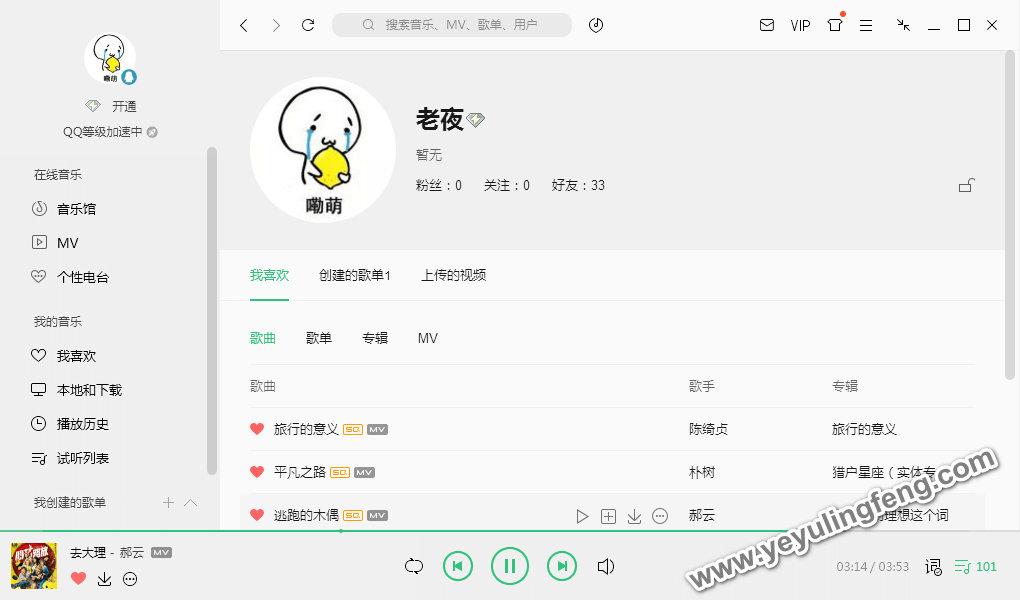 此次分享的版本仅是去广告的绿色版,所以大家该花钱的还是得花钱,该冲绿油油的钻还得继续找企鹅充,唯一的好处就是没有多余的广告打扰,并且软件无需安装,解压后只要找到QQmusic.exe文件打开即可使用了,老夜测试无毒大家尚可放心使用。关于如何下载各大平台的版权音乐呢,这里附上老夜的听歌房站点了:https://ting.yeyulingfeng.com