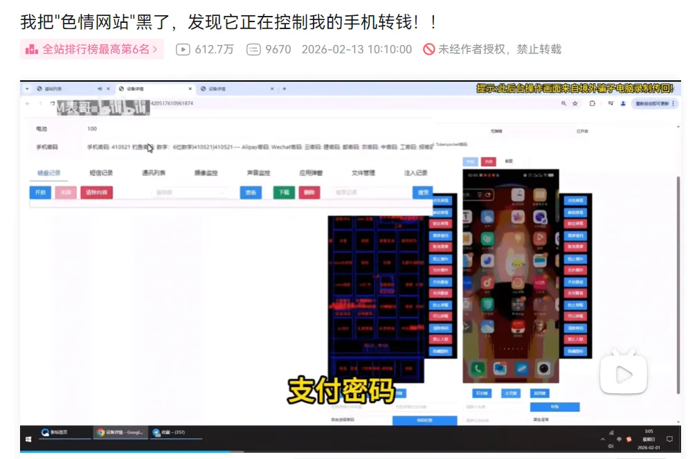 总的来说就是不要在手机上安装来路不明的软件(包括第三方),有些软件如果弹出要授权“无障碍权限”的提示时,千万要警惕,如果你实在憋得慌,就用网站看,反正我这么多年一直用的是网站