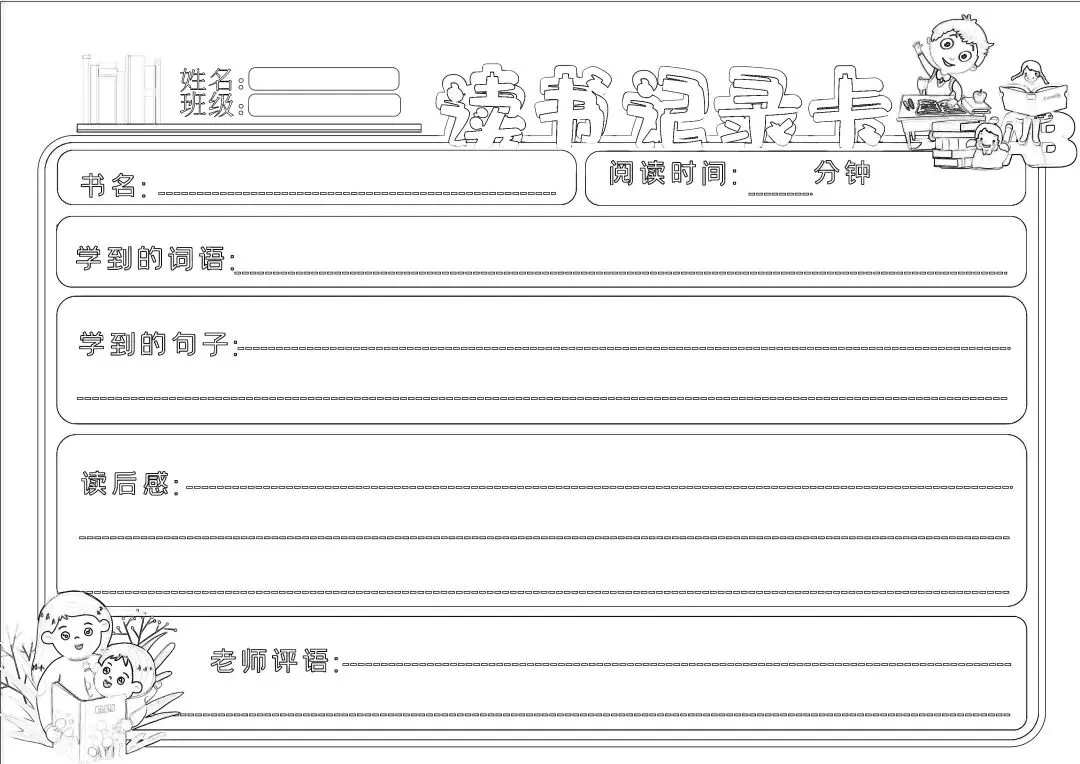 小学阅读记录卡(41套模板)可修改!含线稿!PDF电子版,可打印!