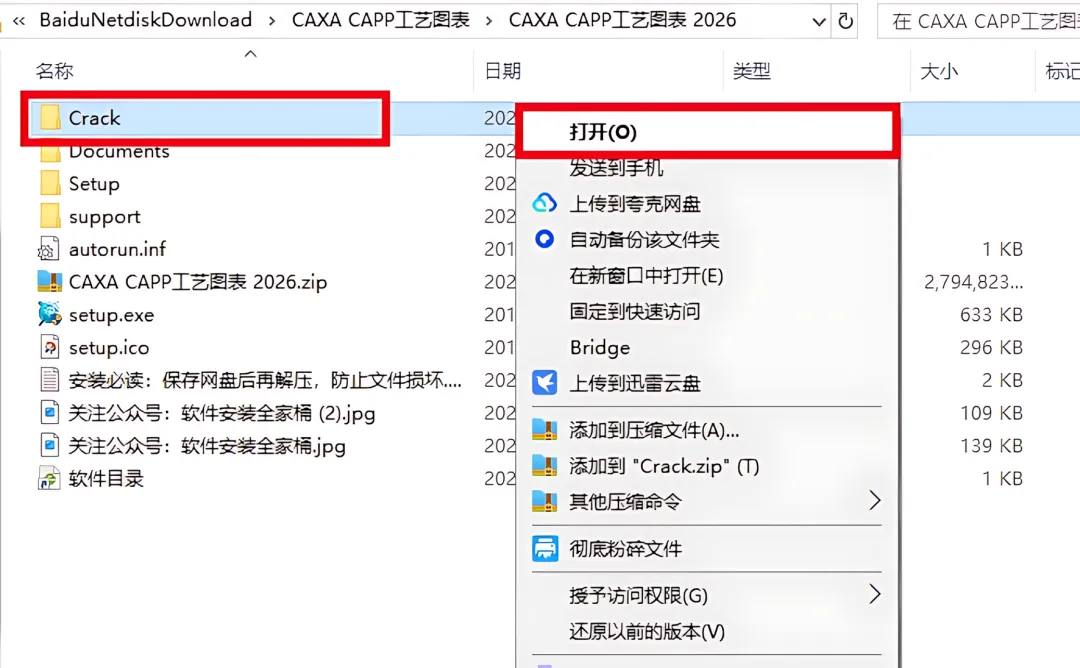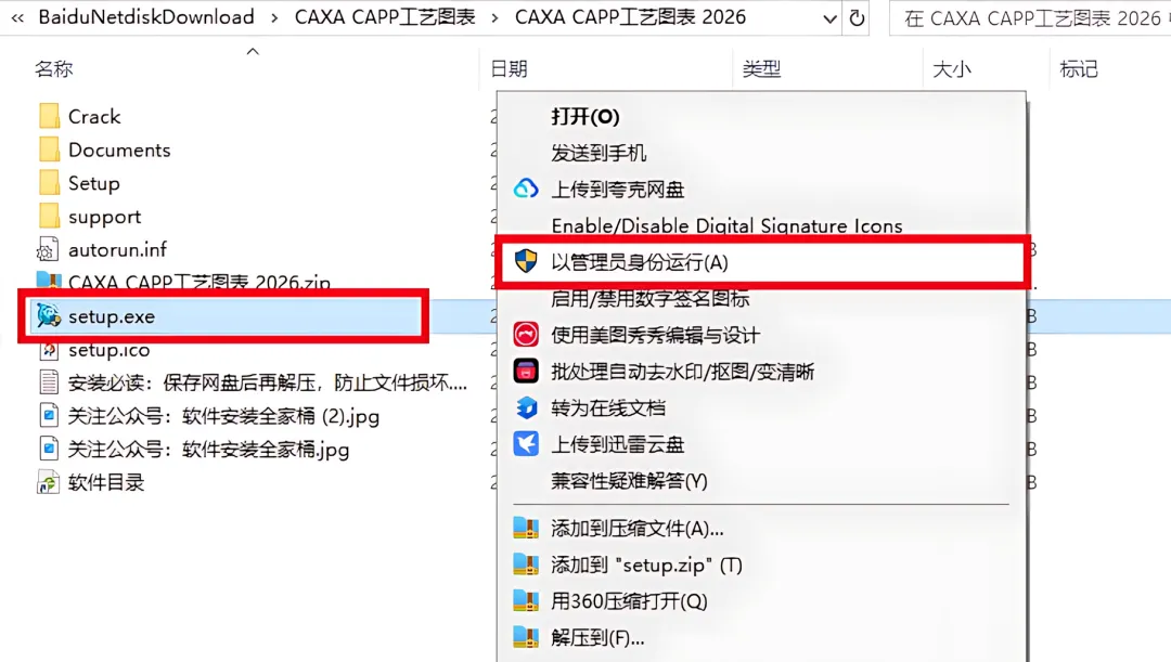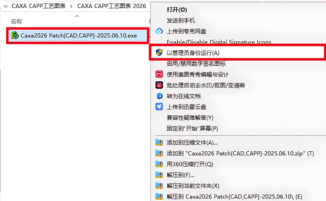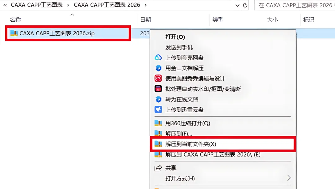 1.下载CAXA CAPP工艺图表 2026 软件安装包到电脑上,右键选择【解压到当前文件夹】。