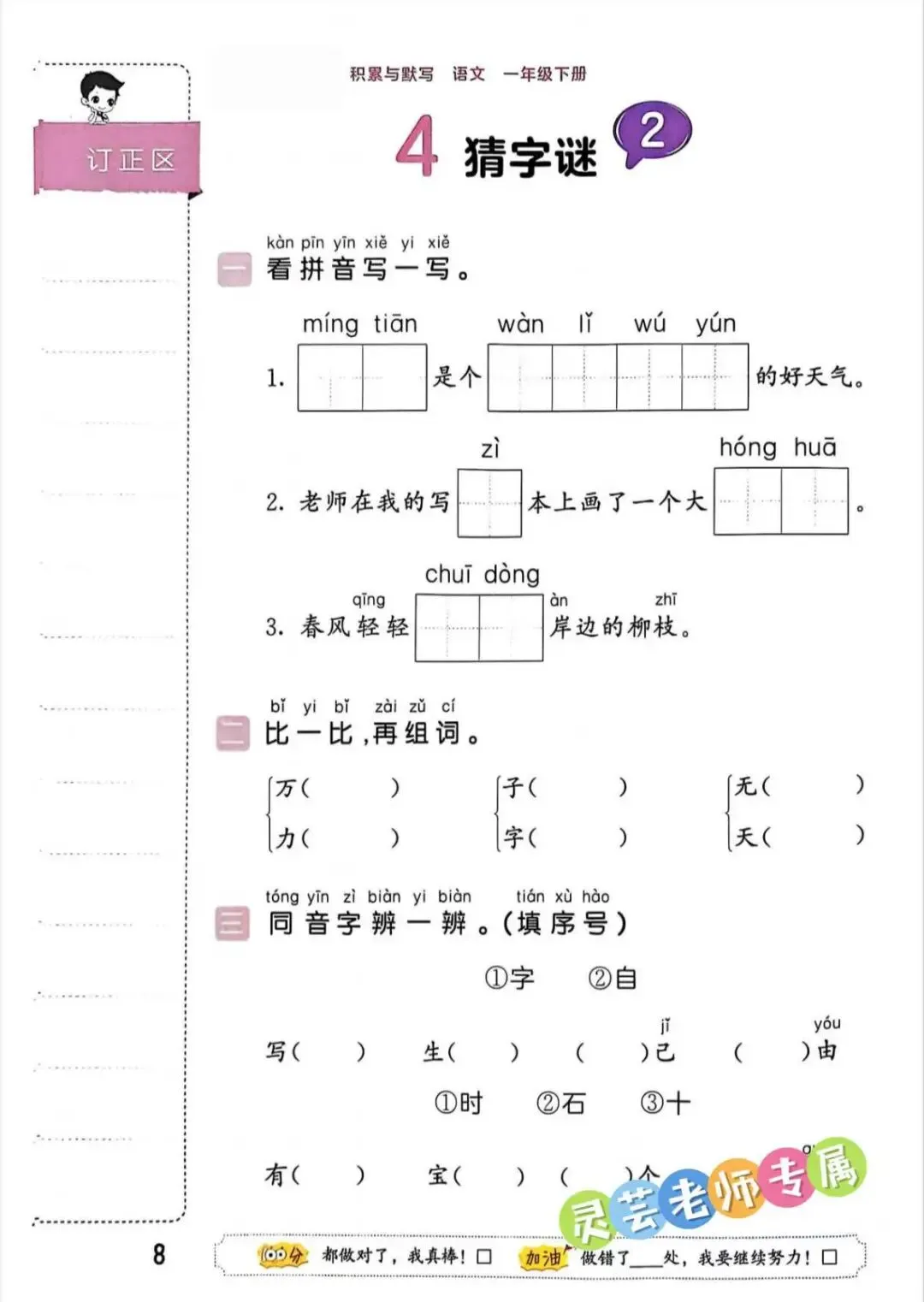 大家好!我是灵芸老师,今天分享的学习资料是:一年级语文下册1~8单元同步默写练习(可打印),文末有电子版获取方式。需要的家长抓紧打印出来让孩子练一练、做一做。如果觉得这份资料不错,建议分享到班级群/年级群,让其他家长打印出来,帮助孩子学习。