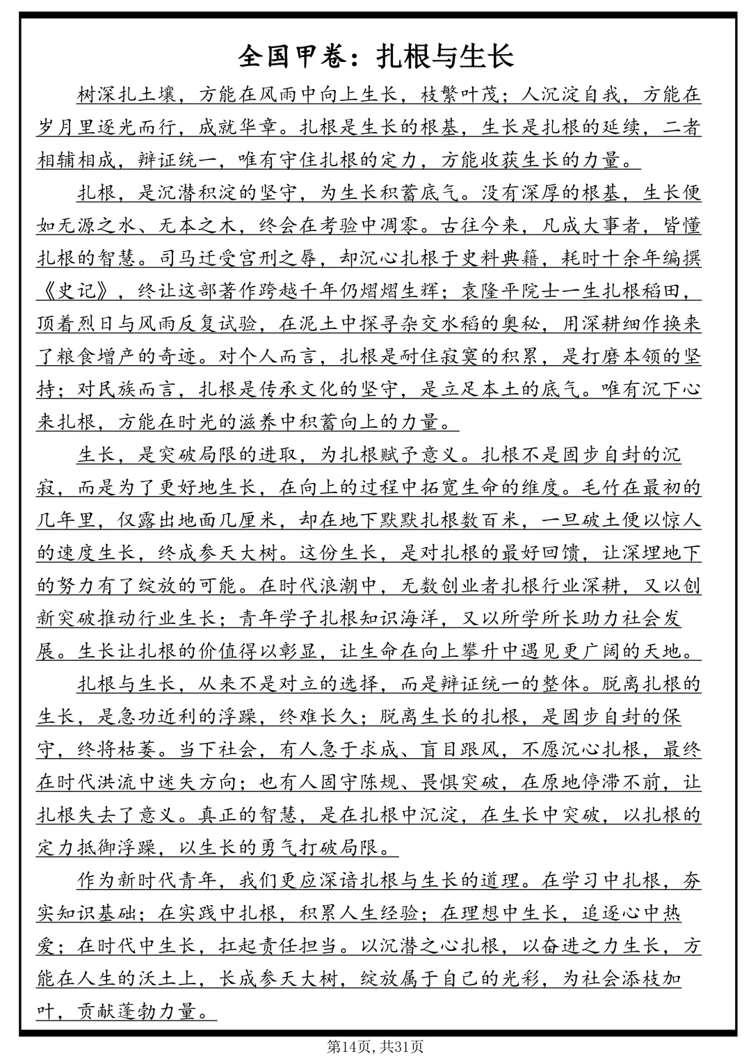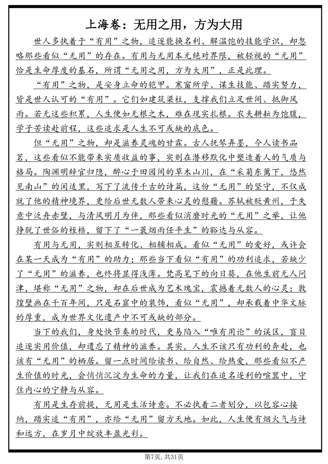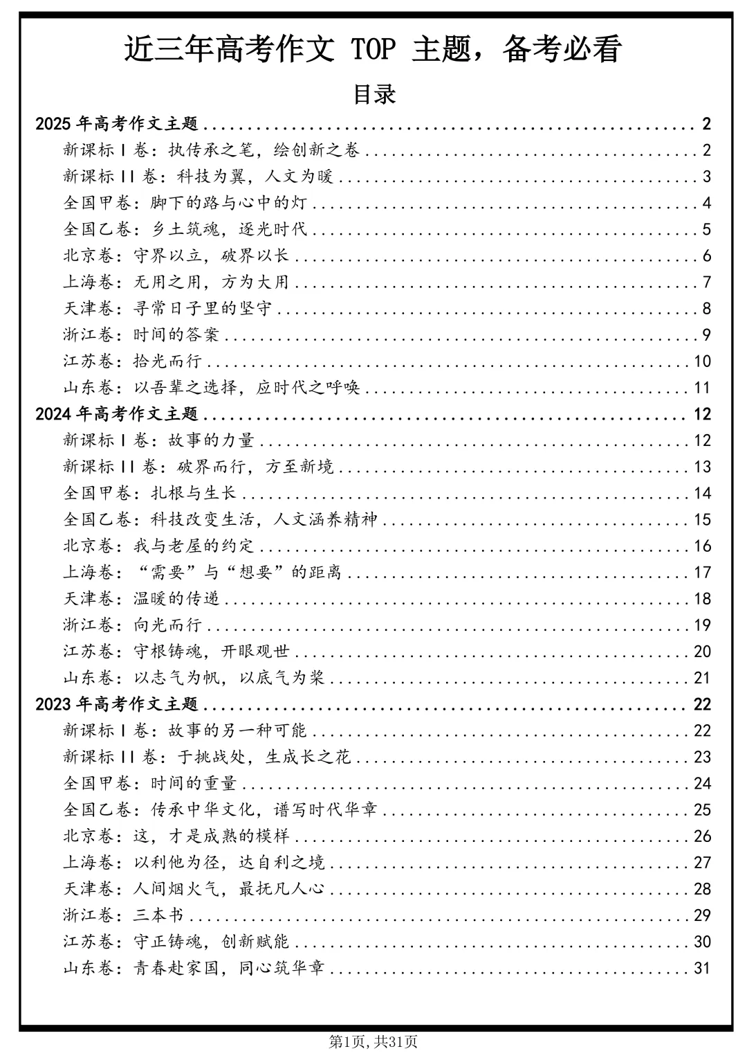 “近三年来的高考top作文主题,可打印的30篇范文”
