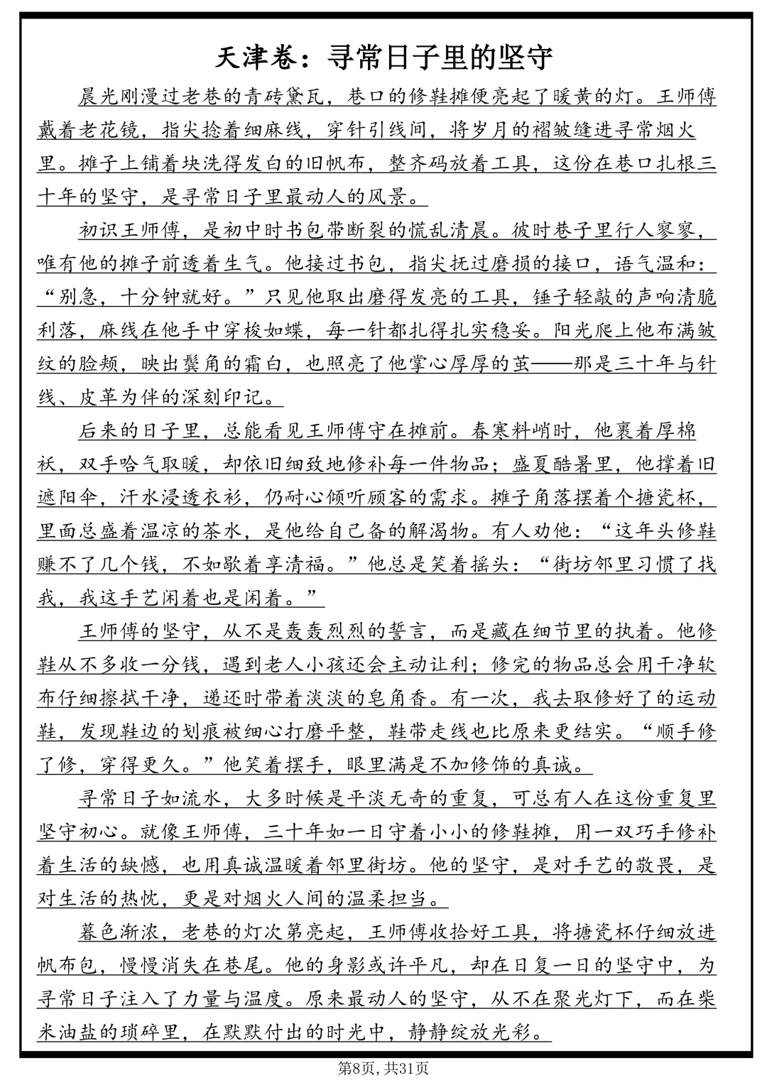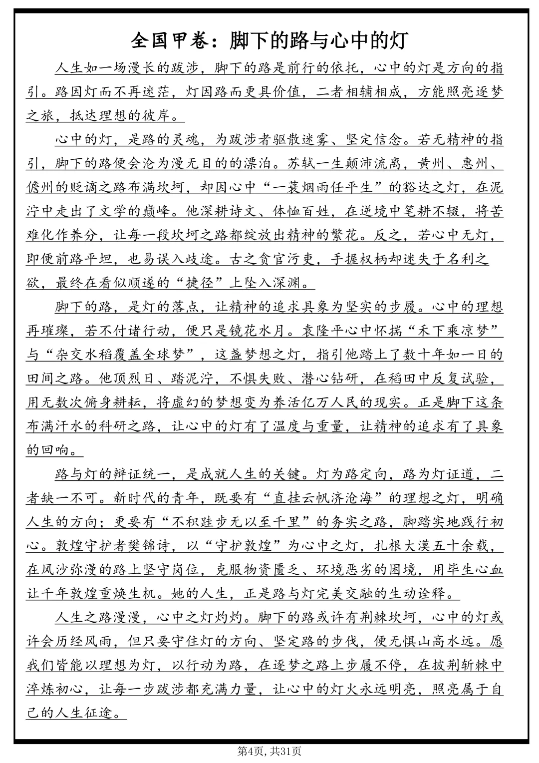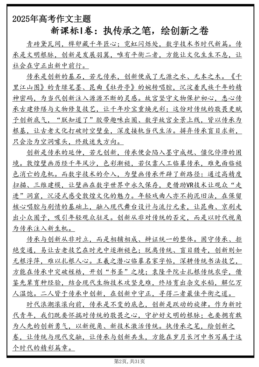 “近三年来的高考top作文主题,可打印的30篇范文”