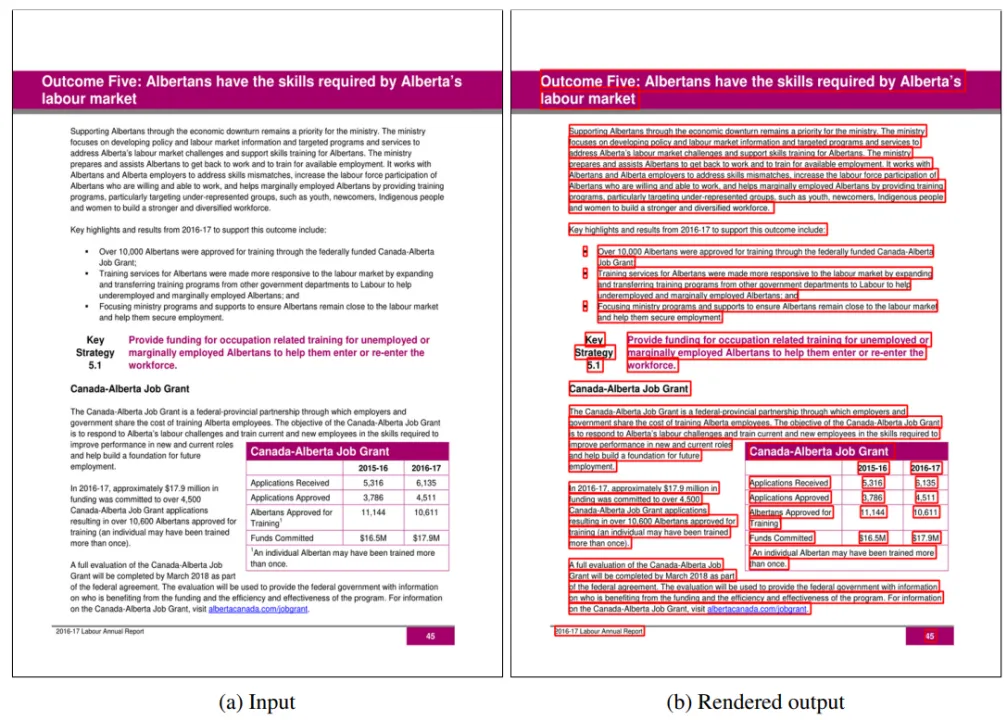该数据集包含各种类型的文本密集图像,其中包括带有边界框的文本行和纯文本的Markdown格式,图4和图5为训练样本示例可视化。