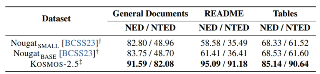 这种多任务的训练方法增强了KOSMOS-2.5在整体上的多模态能力。