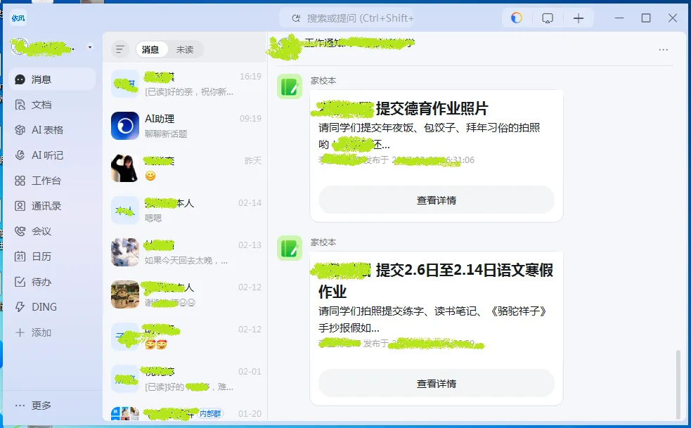 现在打开钉钉,感觉像进了个数字商业综合体,里面真是啥都有,尤其是进入8.0版之后,强行塞入了各种各样的用得上用不上的 AI 工具。相比之下,钉钉7.8.10 就成了不存在兼容问题的最后的也最像是聊天软件的软件了。最舒服的是,它没那么多“小红点诱惑”;没有“发现”页推给你各种没听过公司的动态,没有“协作”里塞满你用不上的模板,底部就几个朴素的图标:消息、联系人、工作台、我的。你想找人?列表就在那儿;想开会或打个语音电话?点进去就能开始。它不“教”你怎么工作,就是老老实实给你传话、通话。安装包小,打开快,老电脑跑着也不费劲。