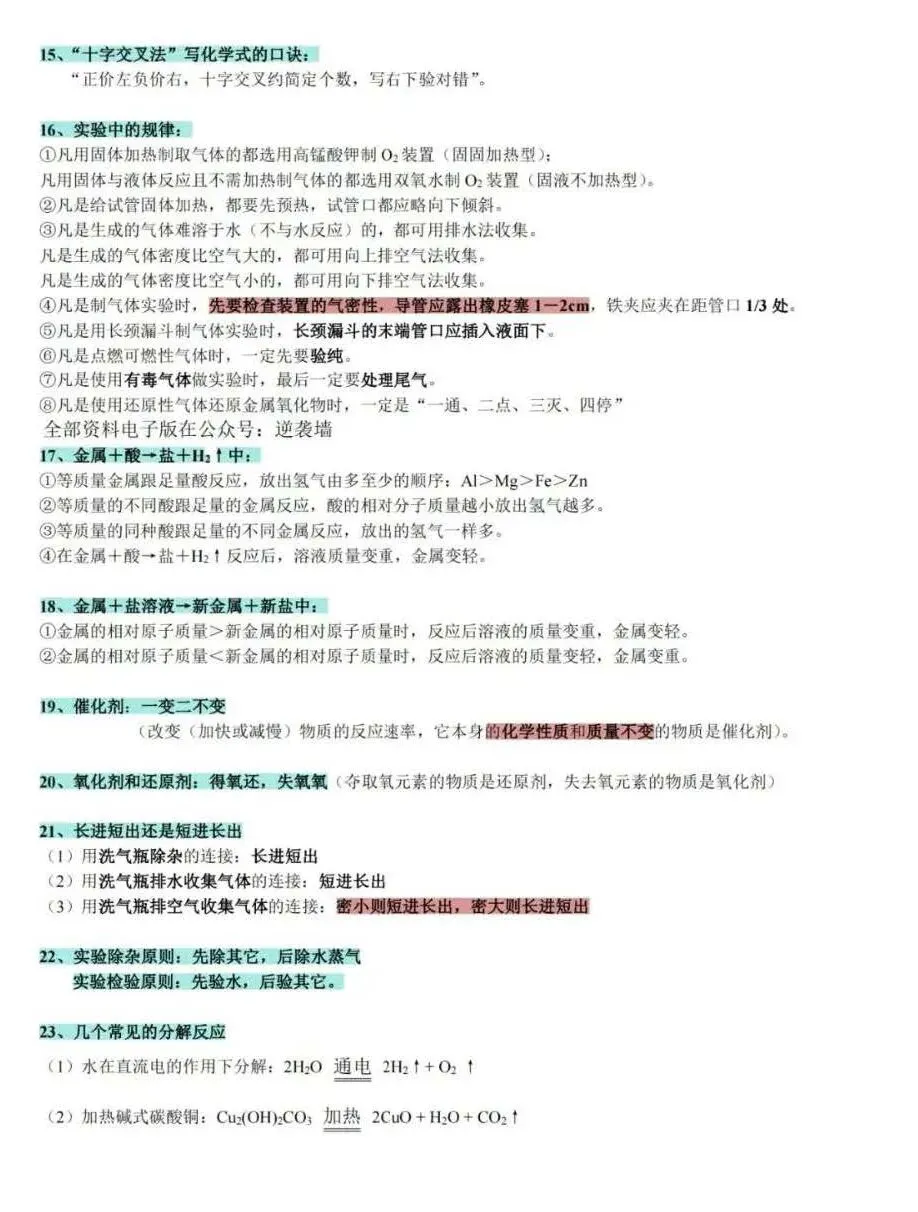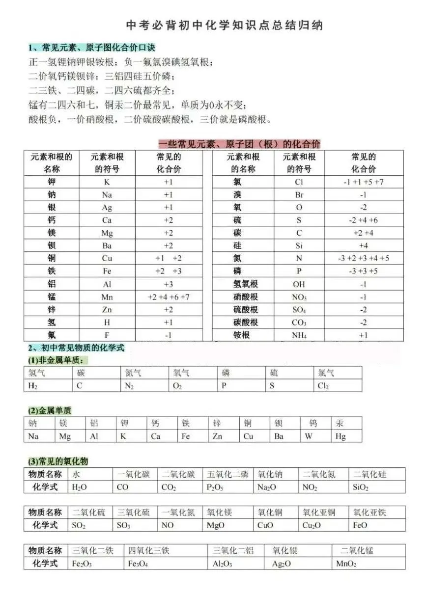中考化学全部考点(必背版),PDF电子版,可打印!