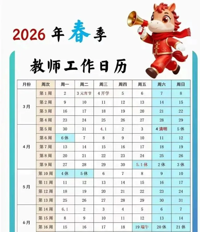 #2026 年春季学期教师工作日历 #教师工作日历 #2026 教师日历 #春季学期日历 #2026 年校历 #教师日历电子版 #教师日历可打印 #2026 最短学期 #2026 年节假日安排 #开学时间 #放假时间