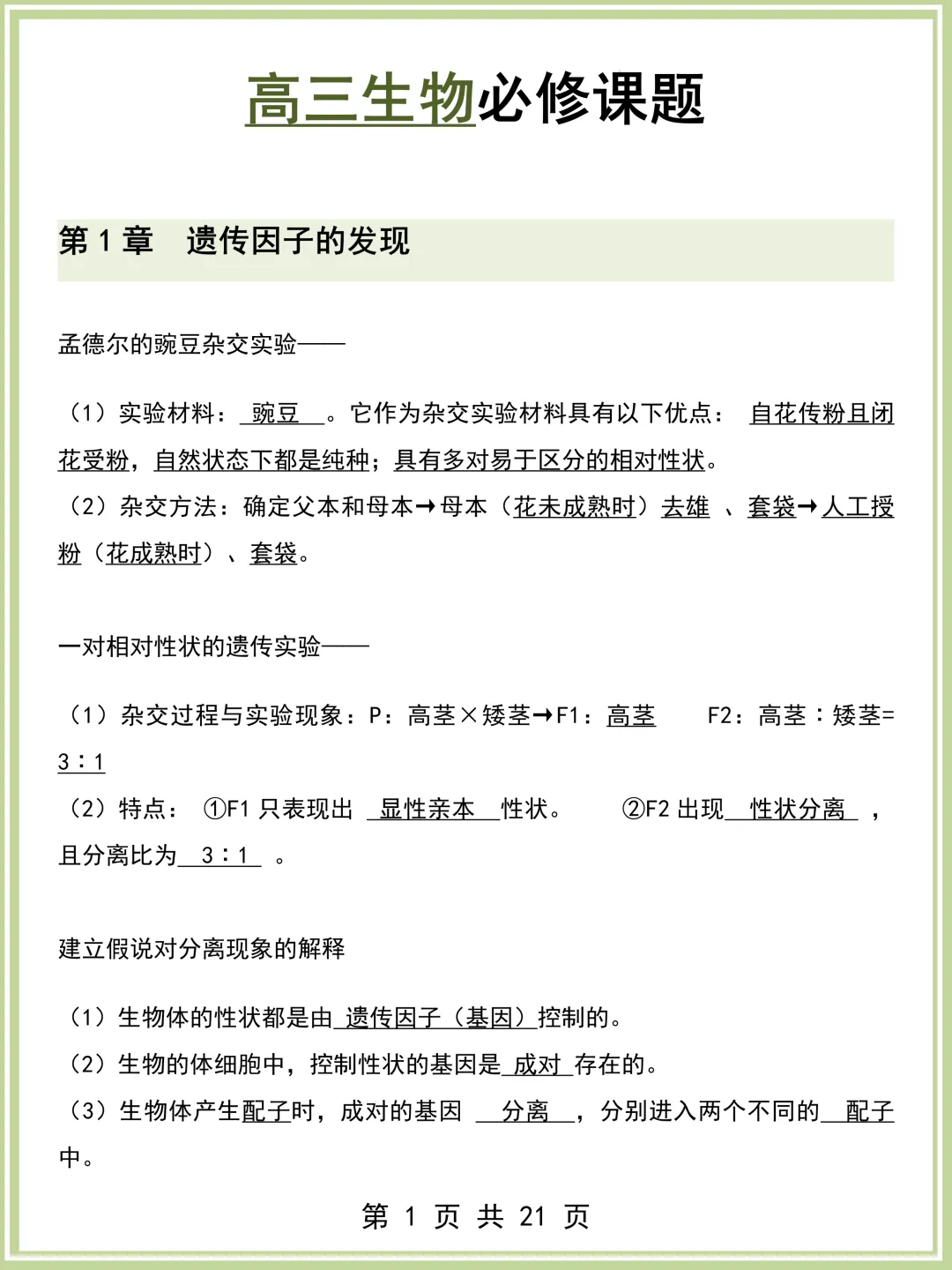 今天给大家整理了三年都用得上的【高三生物必修课题整合】,基础不好,高中三年有这一份就够了‼️