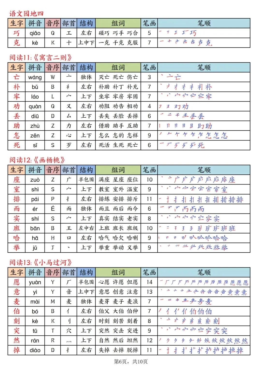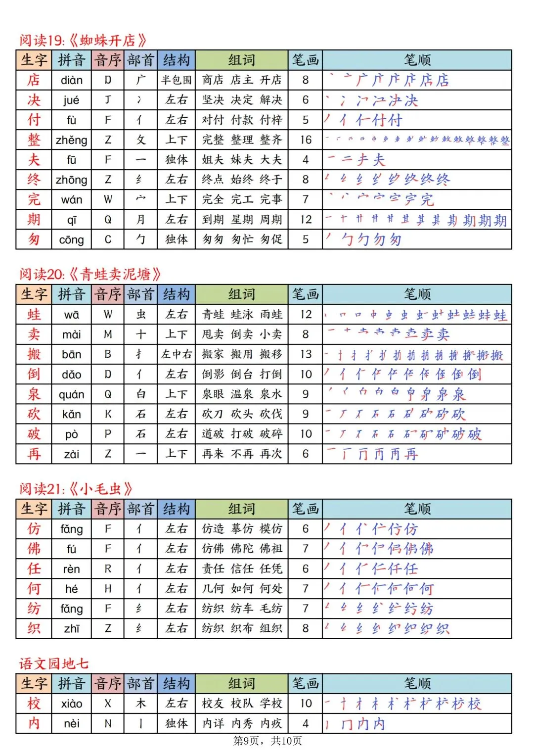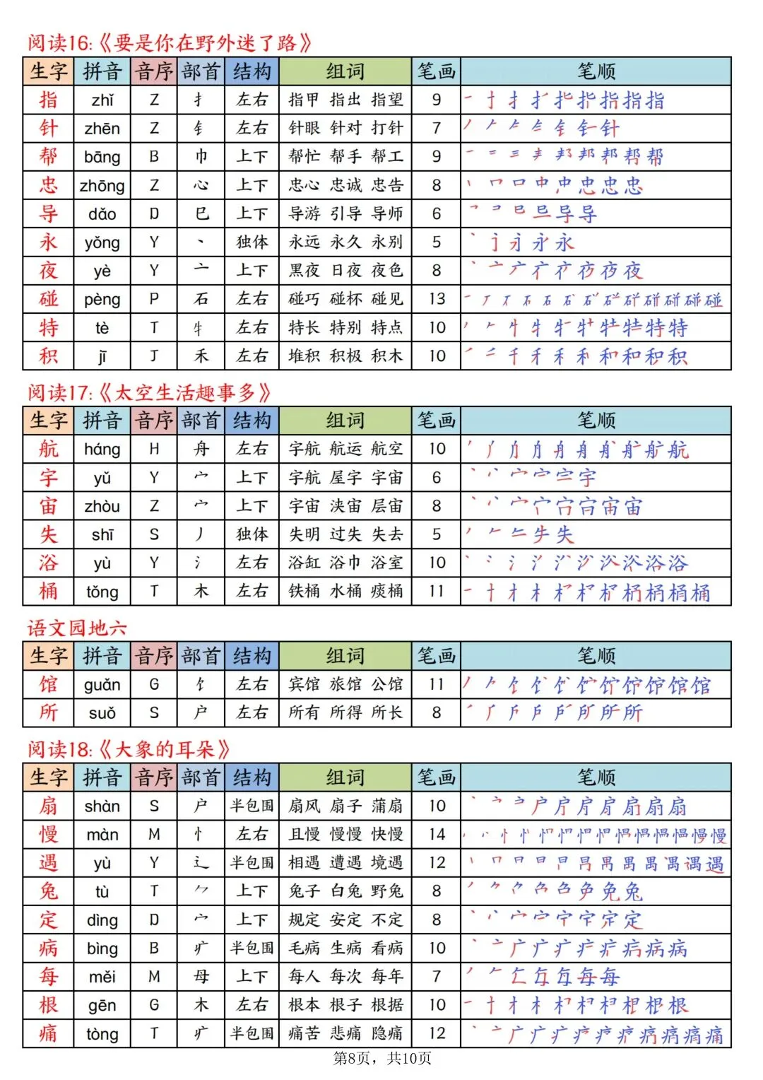 今天【安安满分资料库】给各位家长带来:26年春新二年级下册语文生字表课课贴,共10页。