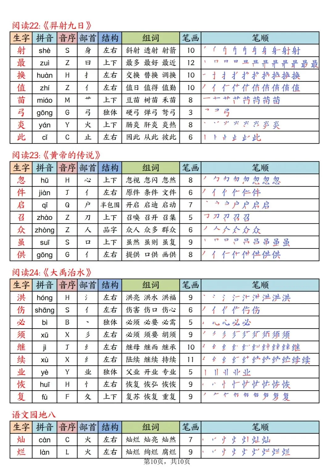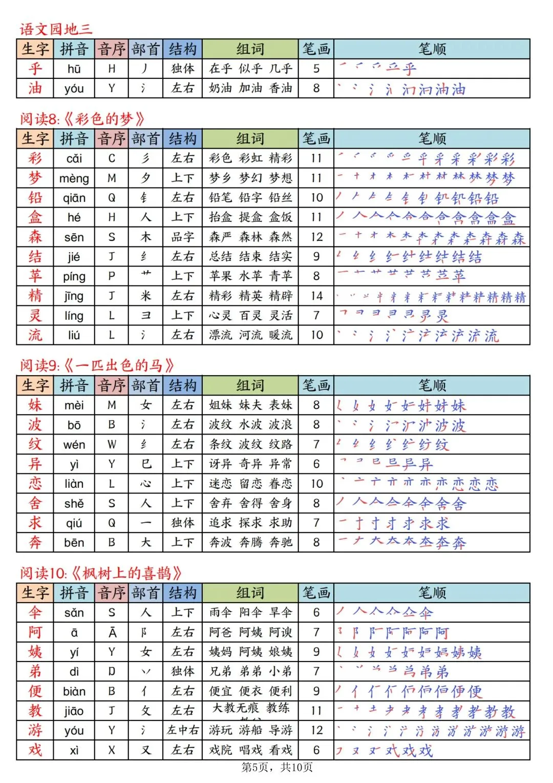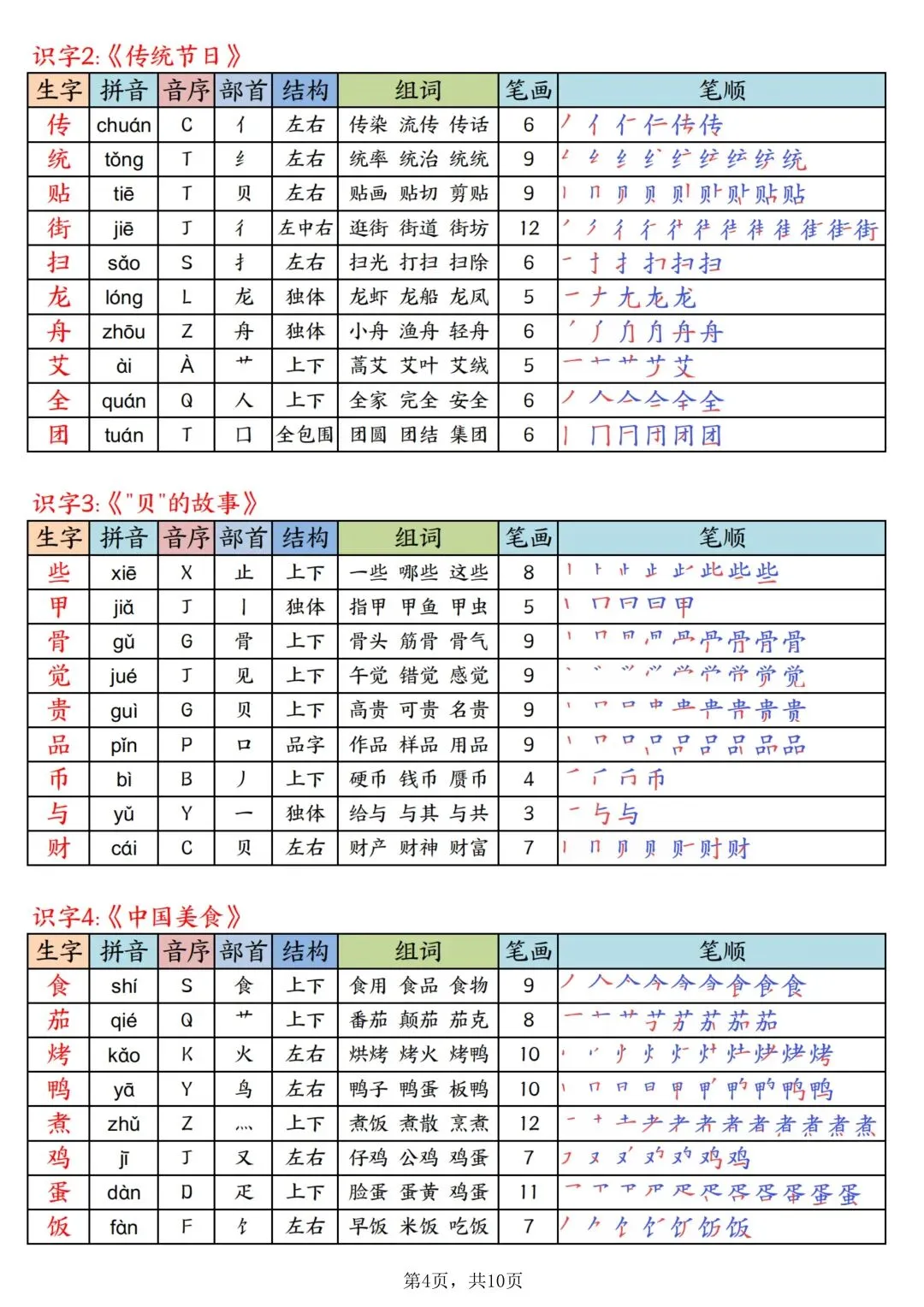 今天【安安满分资料库】给各位家长带来:26年春新二年级下册语文生字表课课贴,共10页。