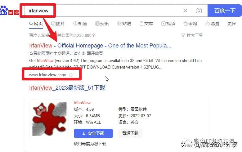 百度搜索 IrfanView,看好对应网站,点进去,下载软件。(默认是英文网页,浏览器一般自带翻译功能,翻译后下载)