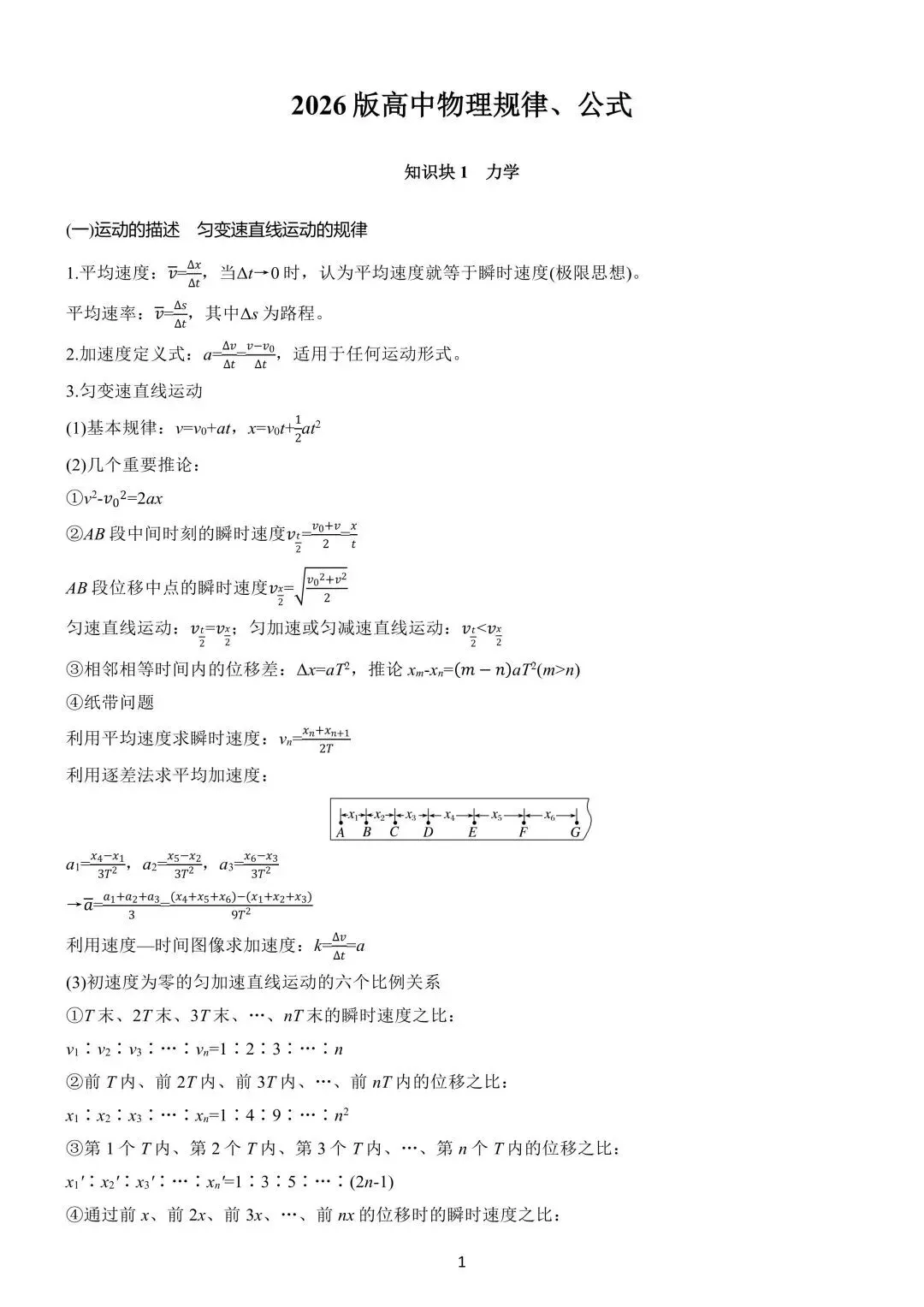 2026版高中物理规律、公式总结(精细版)PDF高清无水印电子版,网盘免费打包下载