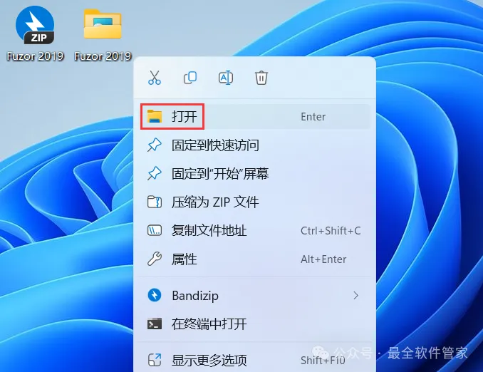 12、右键桌面上的【Fuzor 2019软件图标】,点击【打开】