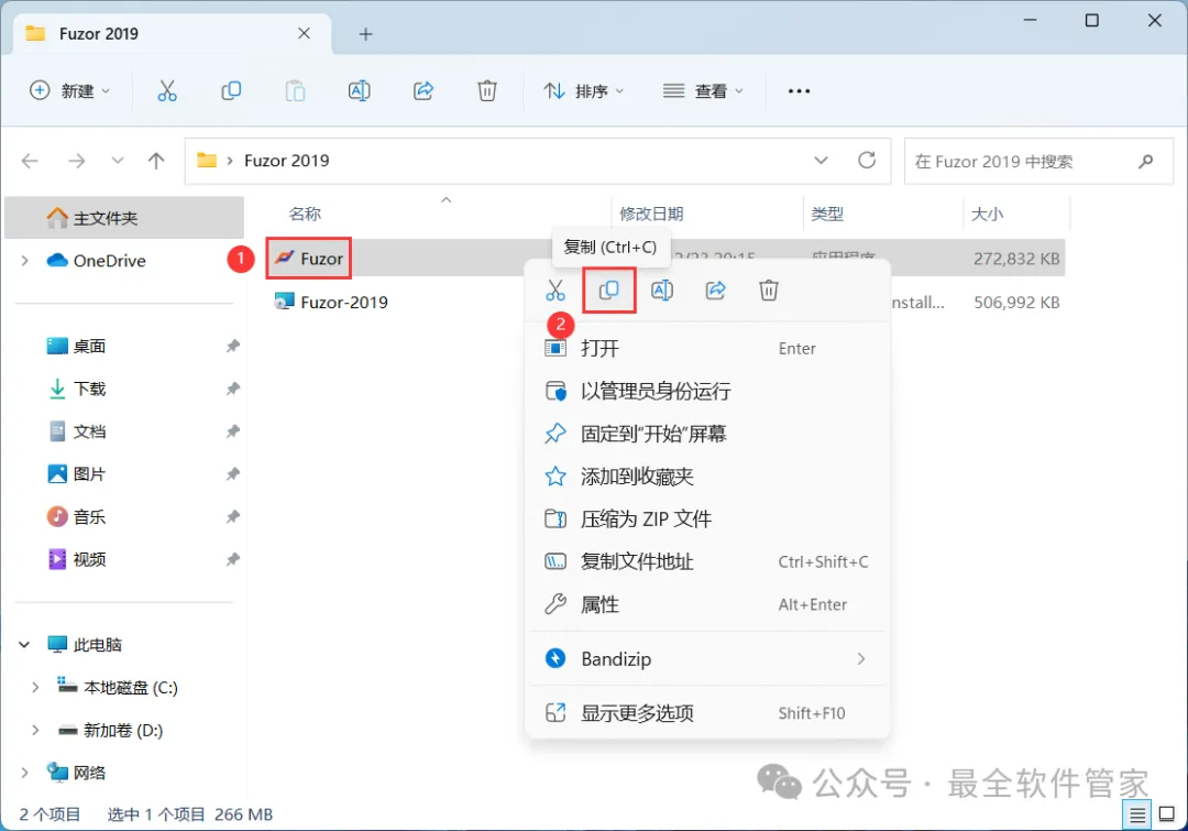 10、回到Fuzor 2019文件夹,找到【Fuzor】文件,右键点击【复制按钮】