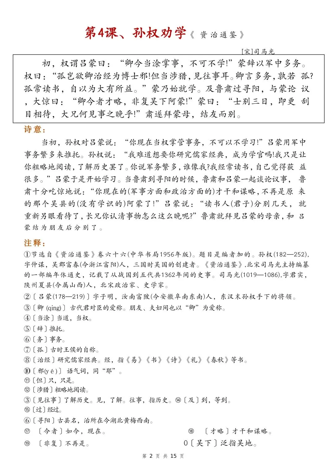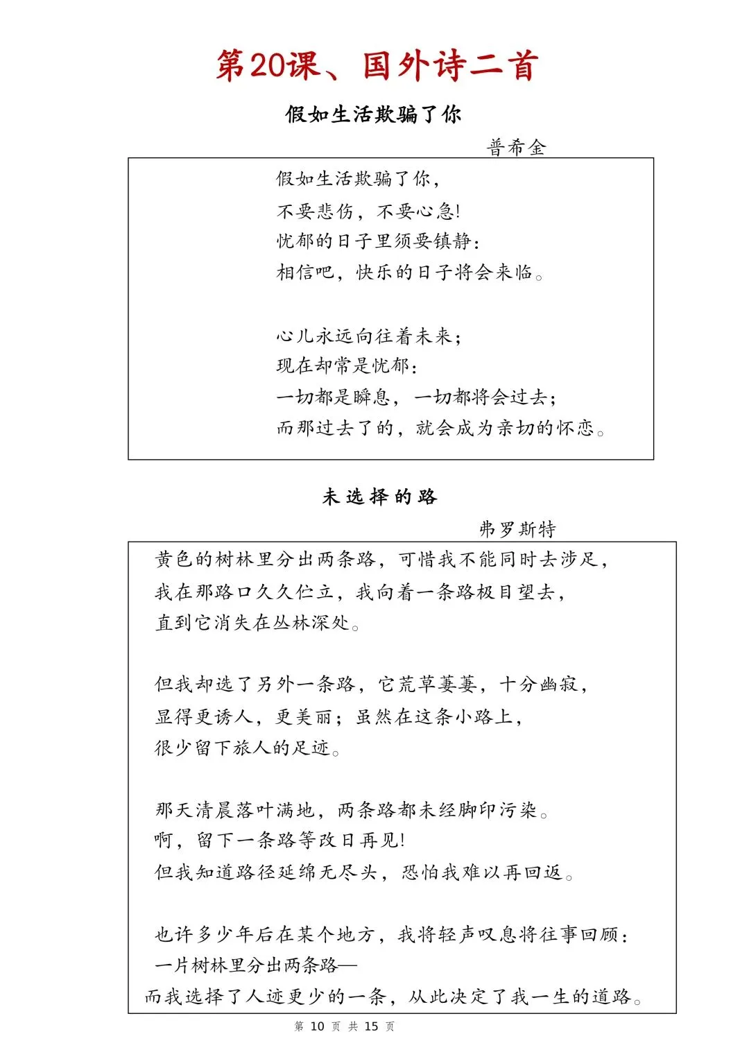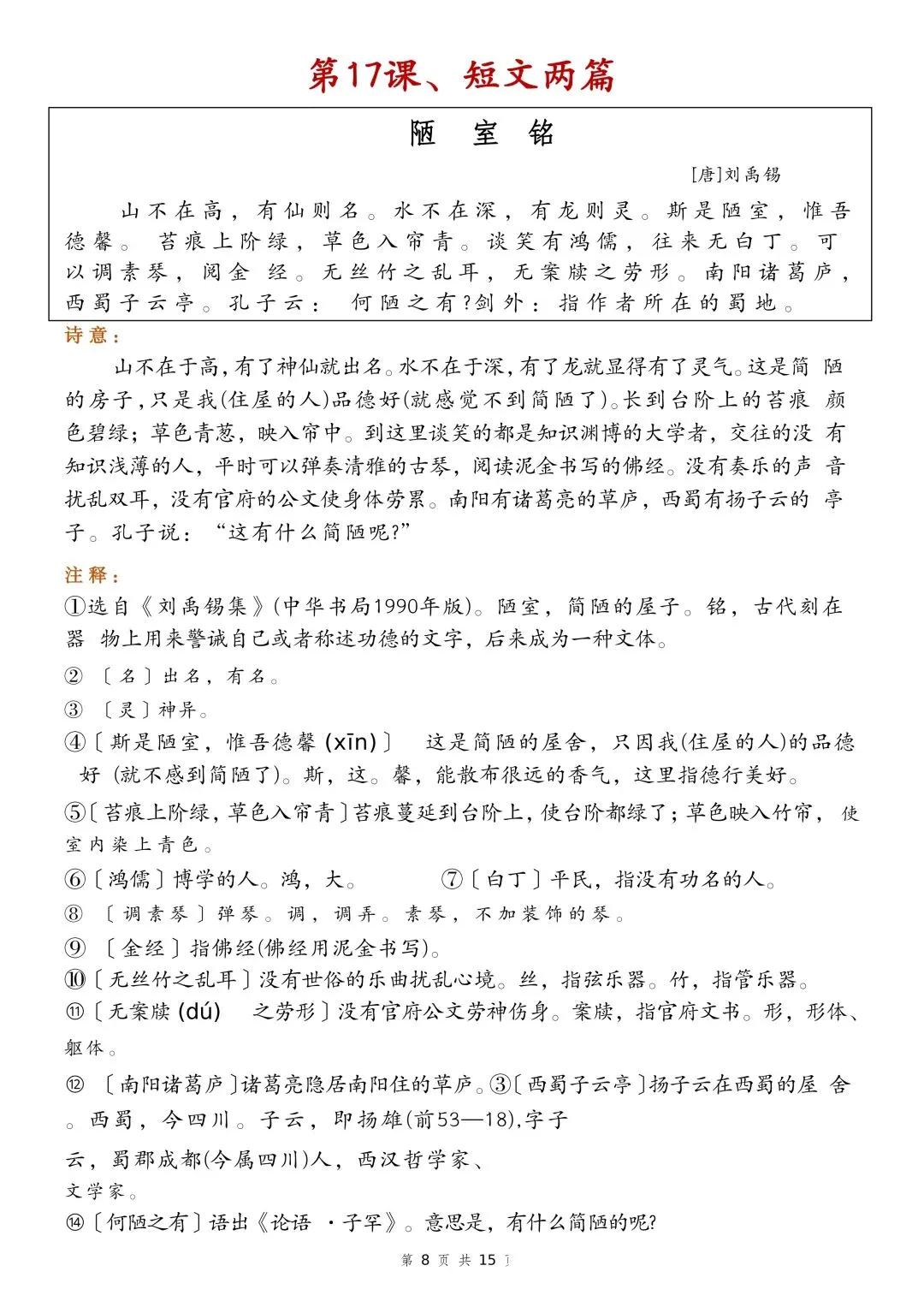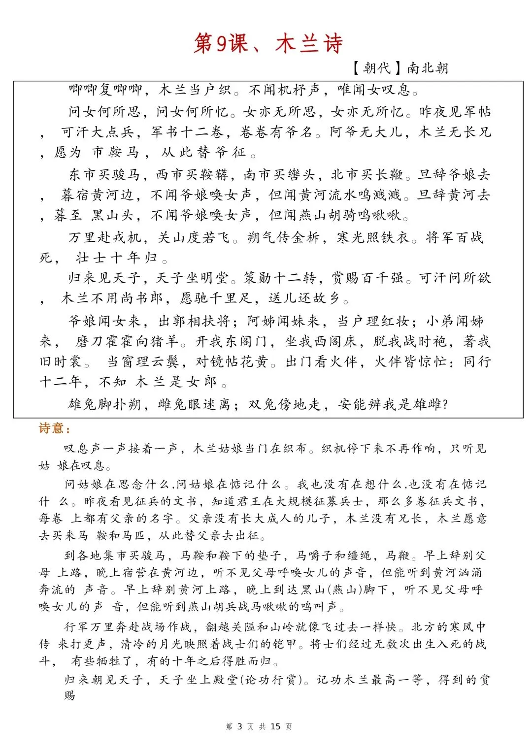 2026春人教部编版七年级下册语文寒假预习必背内容汇总+注释译文(含必背课文、古诗词、文言文)完整电子版可打印。