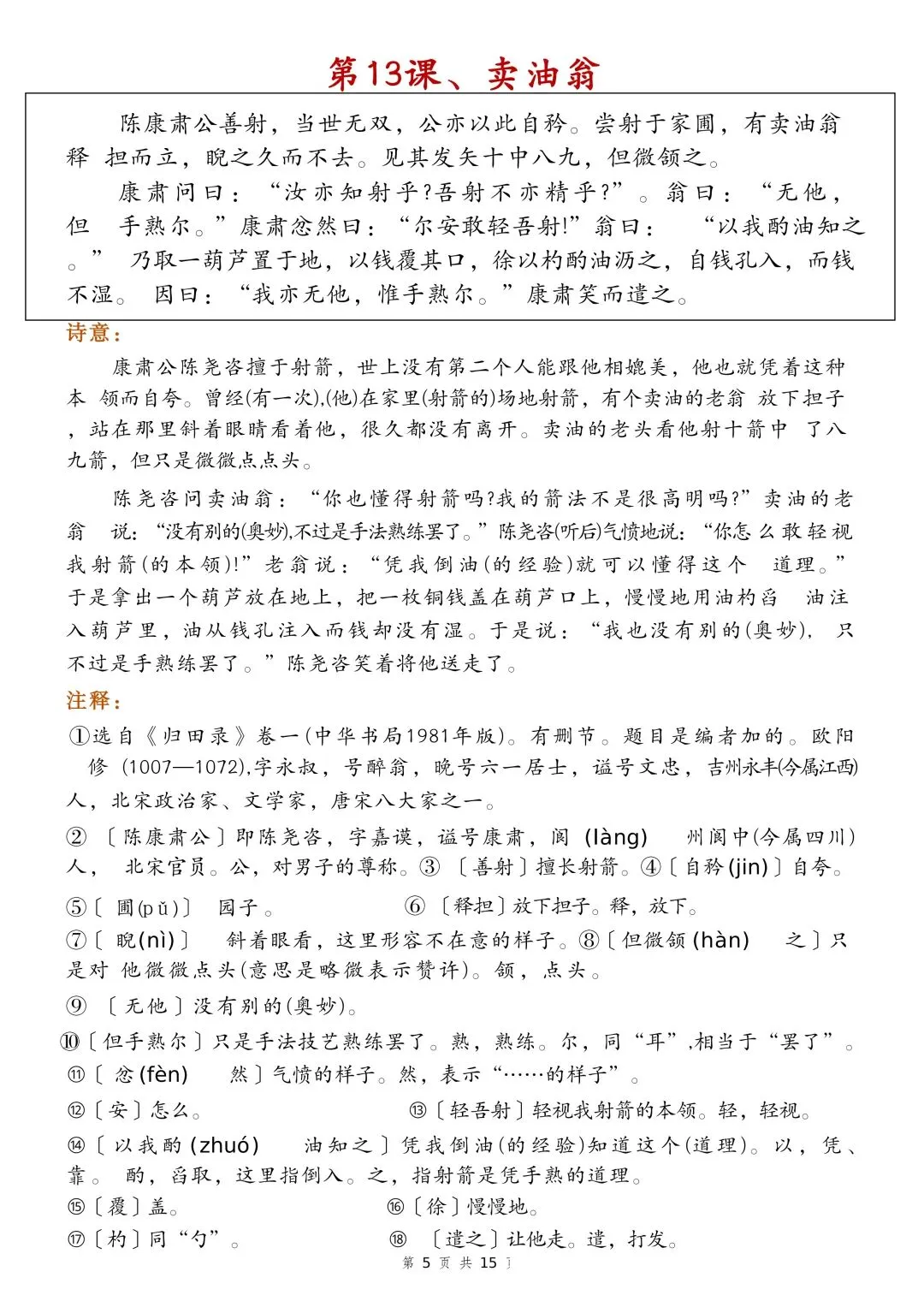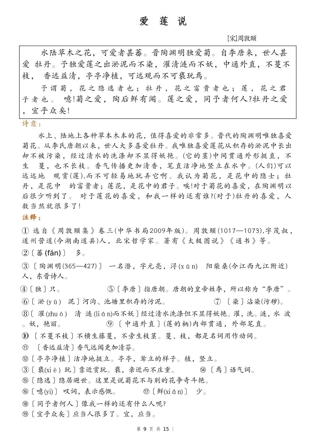 2026春人教部编版七年级下册语文必背课文内容汇总+注释译文(含必背课文、古诗词、文言文)完整可打印