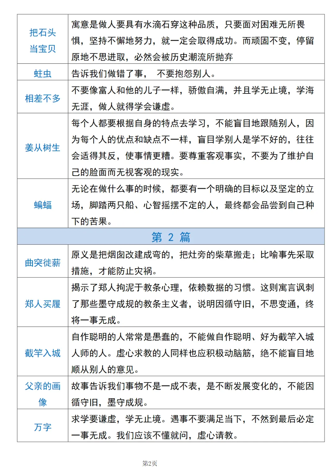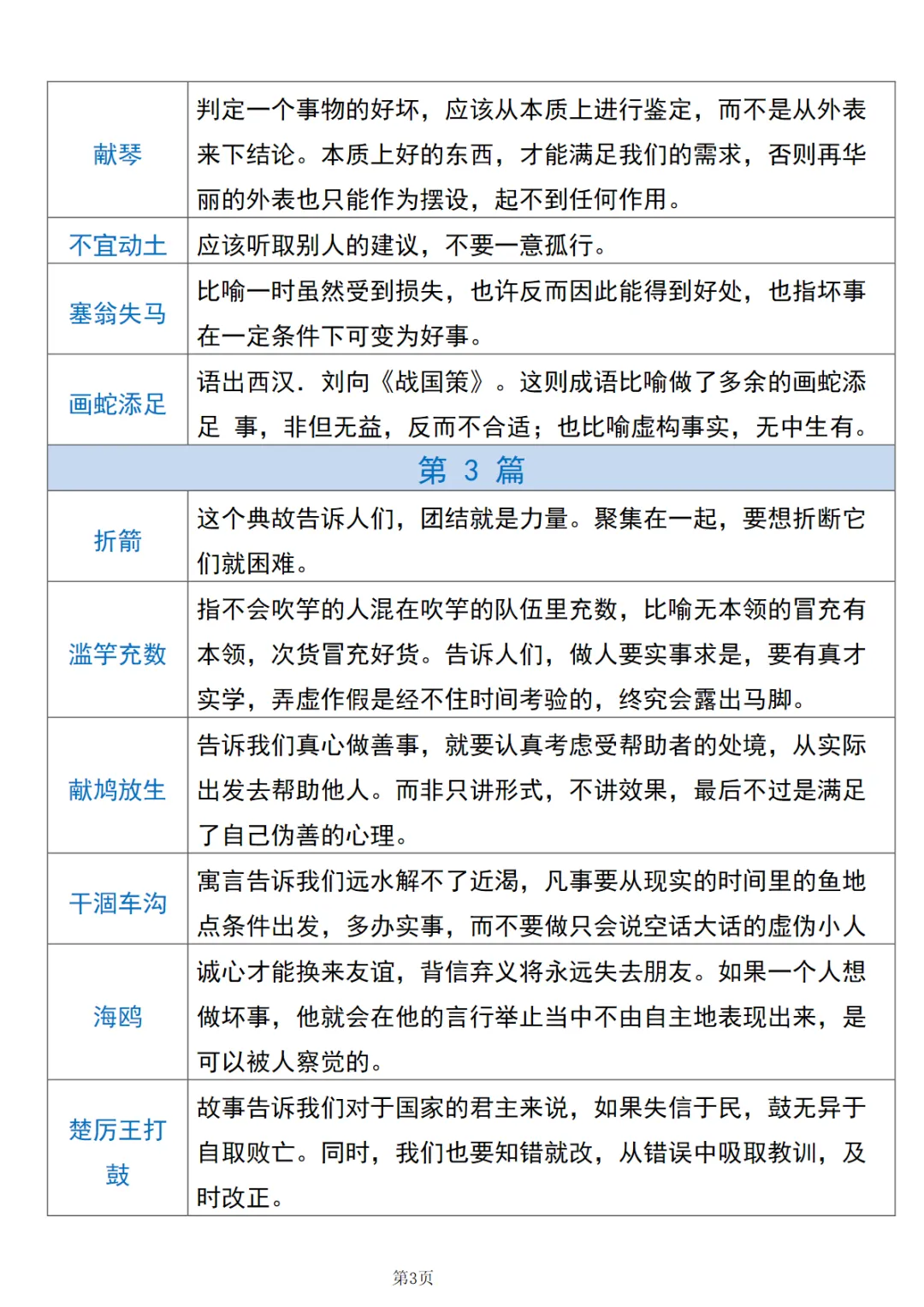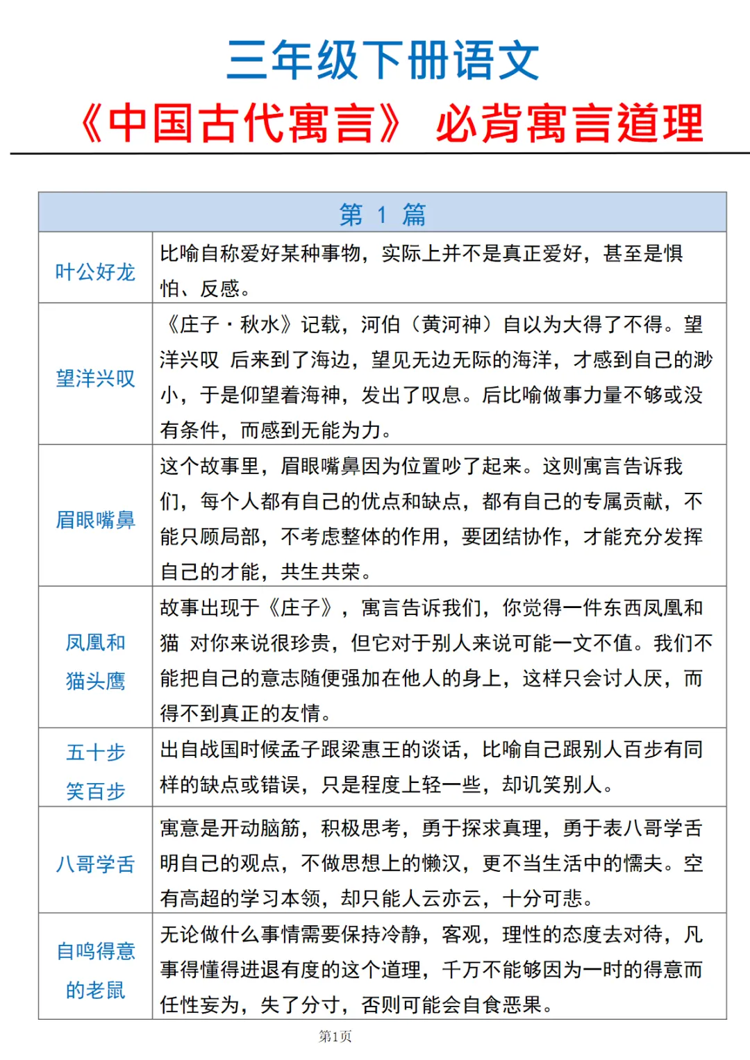 【免费下载】三年级(下)语文【中国古代寓言】寓言道理