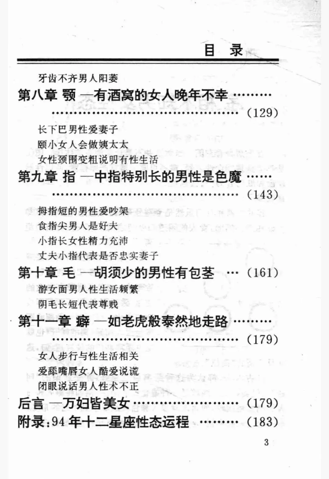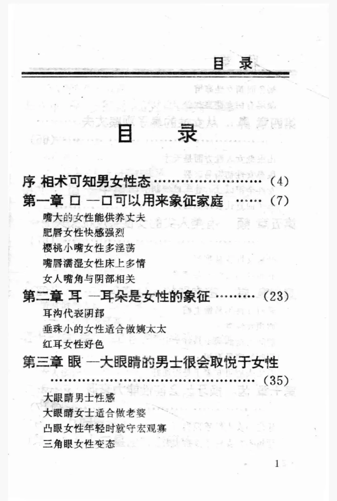 比如,你想知道什么样的女人贤惠顾家,书里会说大眼睛的女士适合做老婆;你想知道什么样的男人花心,书里会教你三角眼和某些眉形的男人要小心。