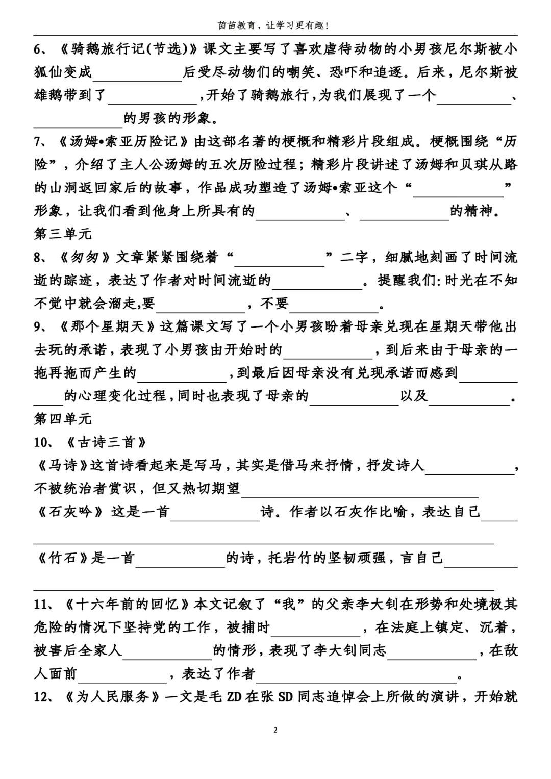 6、《骑鹅旅行记(节选)》课文主要写了喜欢虐待动物的小男孩尼尔斯被小狐仙变成大拇指般大小后受尽动物们的嘲笑、恐吓和追逐。后来,尼尔斯被雄鹅带到了天上,开始了骑鹅旅行,为我们展现了一个曾经喜欢虐待动物、喜欢搞恶作剧的男孩的形象。