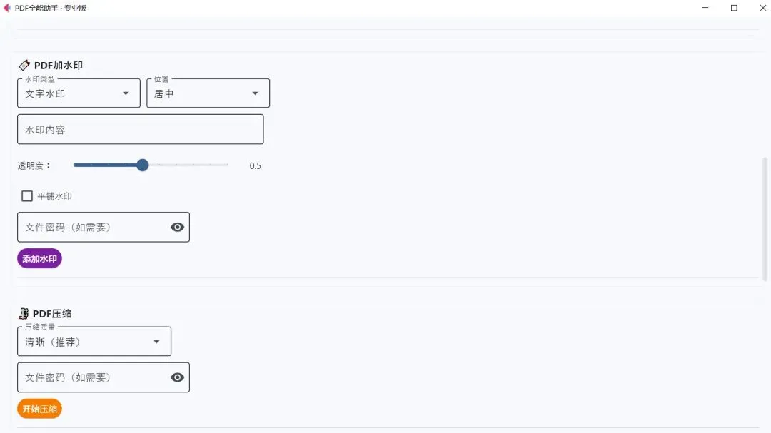支持加密 PDF直接处理(输入密码即可合并 / 拆分 / 压缩 / 加水印)