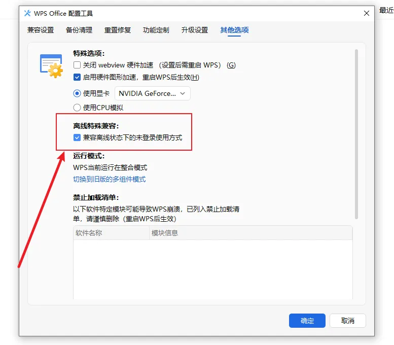接着点击“其他选项”,在“离线特殊兼容”区域,把“兼容离线状态下的本地使用方式”勾选上。