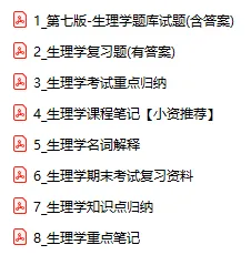 今天分享的资料是「0011-生理学」电子版+学习笔记+知识点总结+期末考试重点+复习资料+习题集及答案+名词解释+历年真题试卷及答案+题库及答案+复习重点+思考题及参考答案+公式总结+考试重点基础题+知识总结+高清PDF可打印+免费分享!
