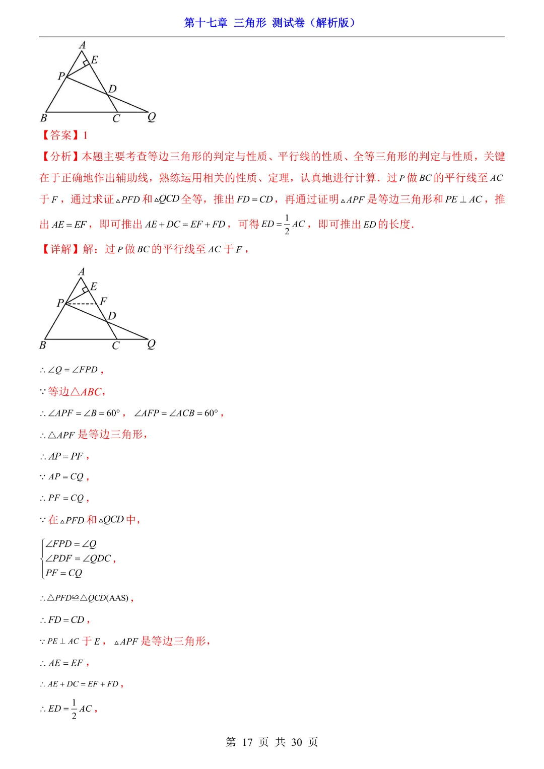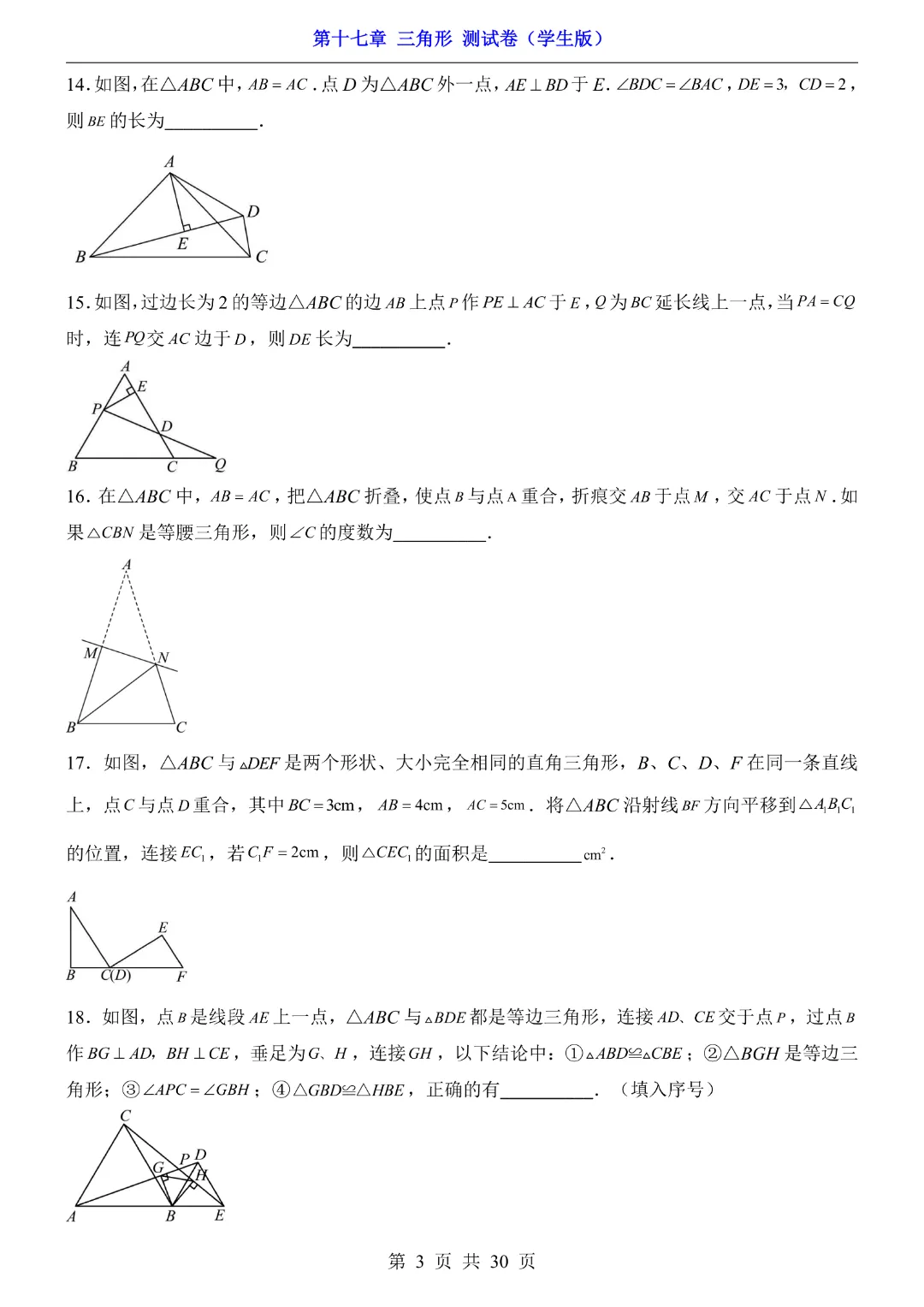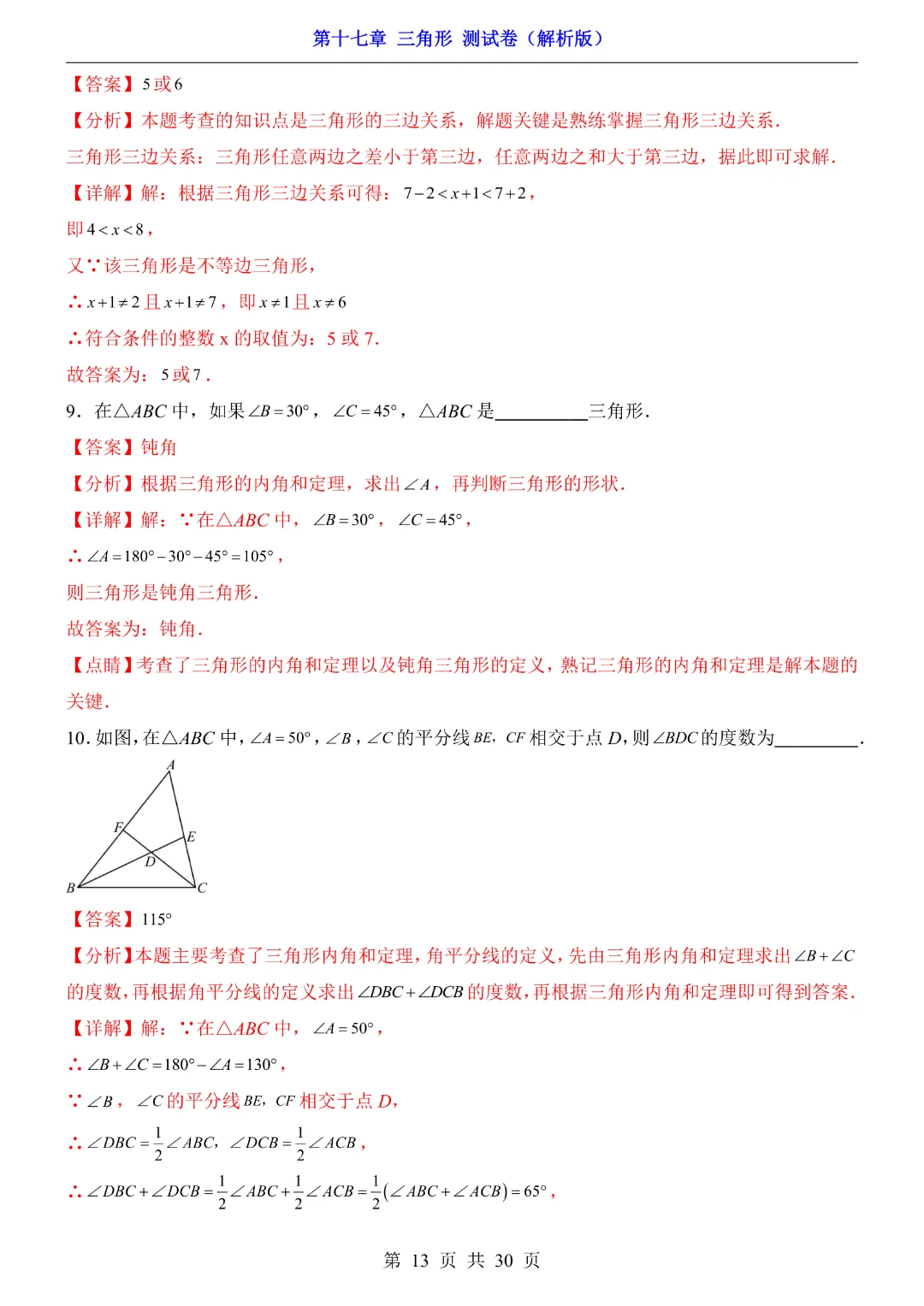 【七年级下册数学沪教54版】第17章三角形测试卷带答案丨完整电子版可打印