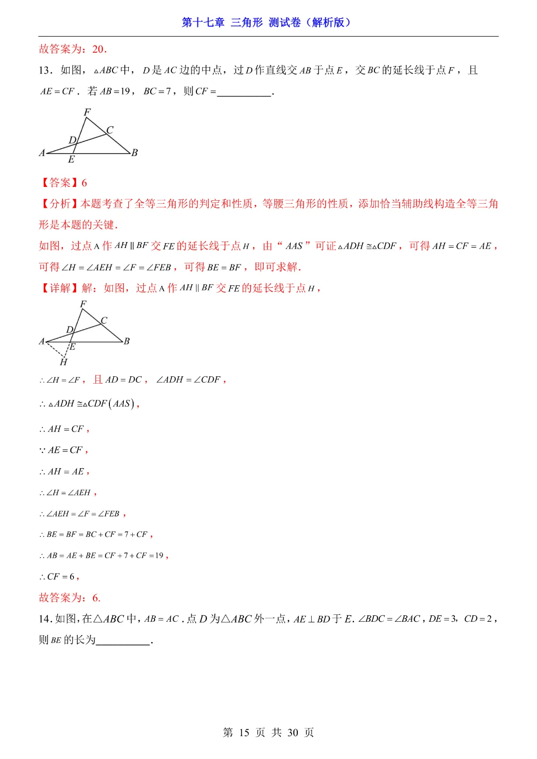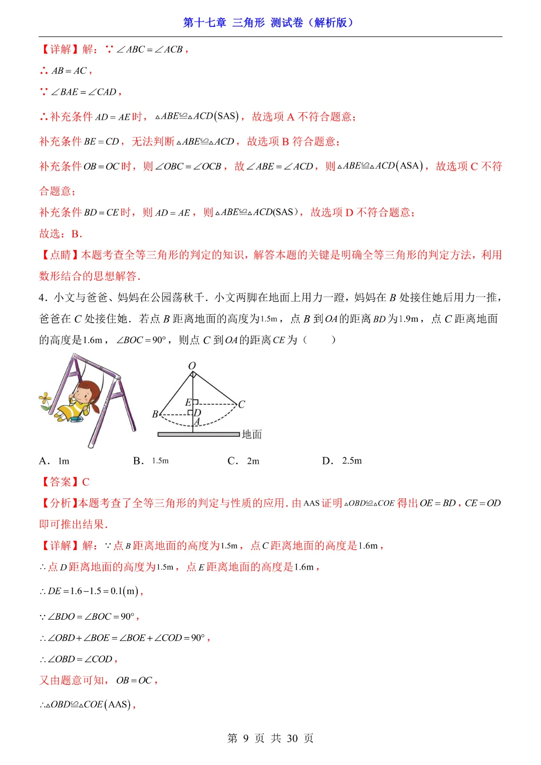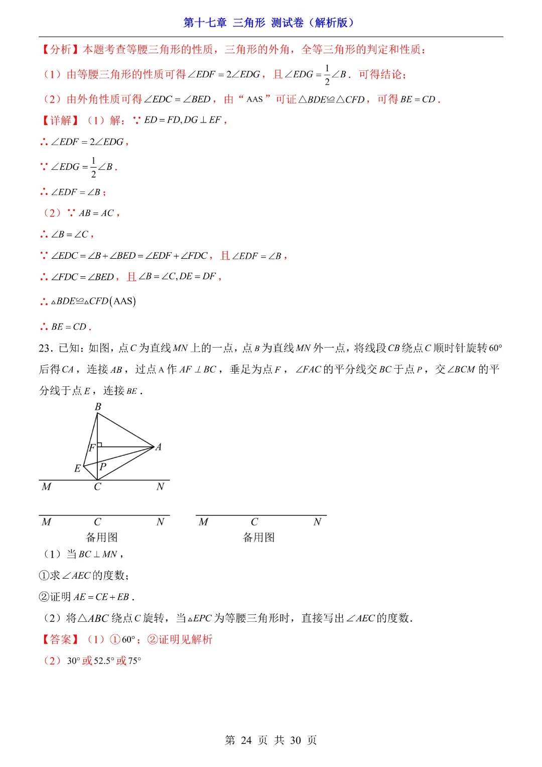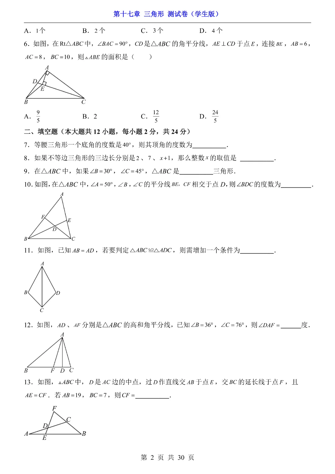 【七年级下册数学沪教54版】第17章三角形测试卷带答案丨完整电子版可打印