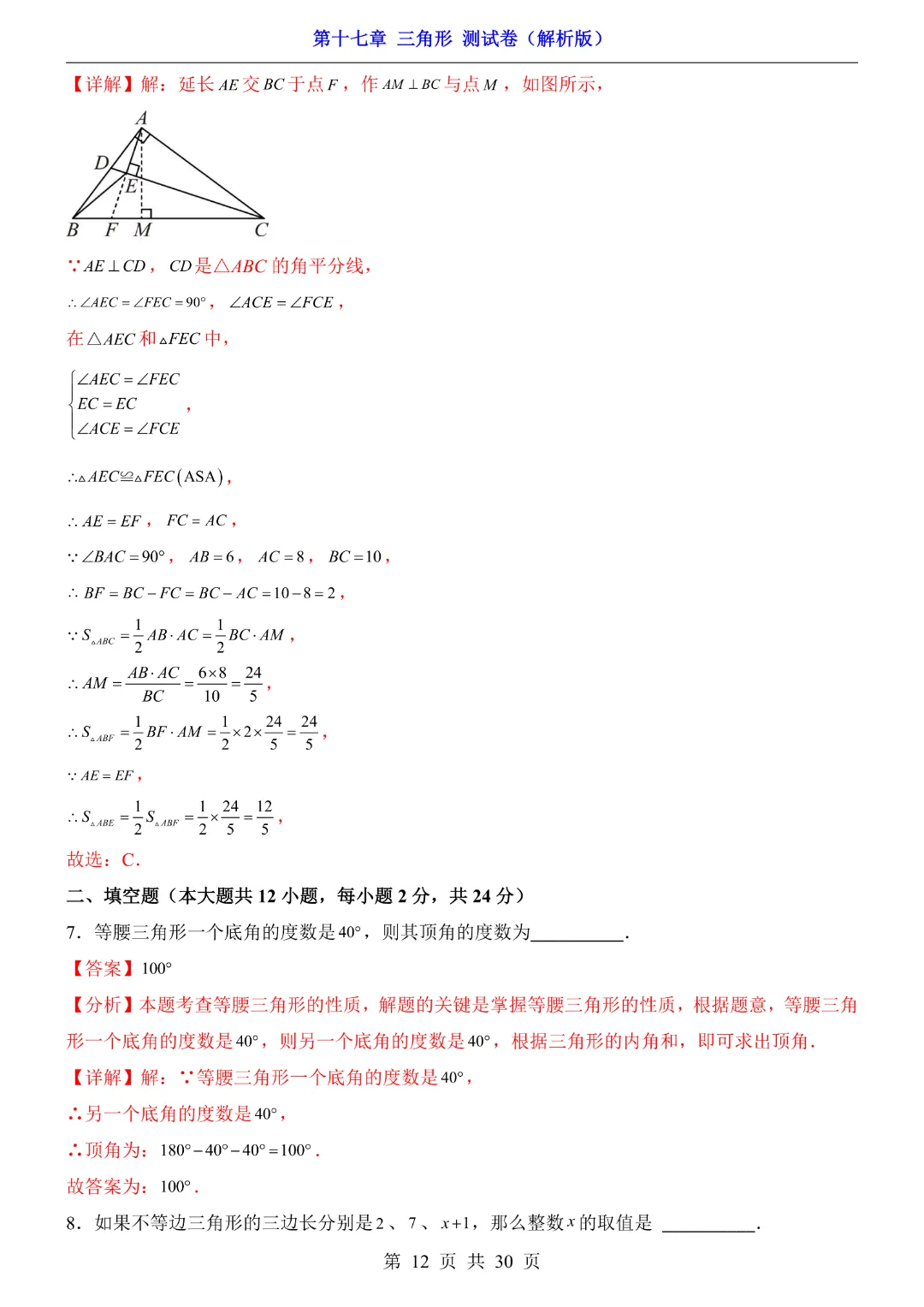 【七年级下册数学沪教54版】第17章三角形测试卷带答案丨完整可打印