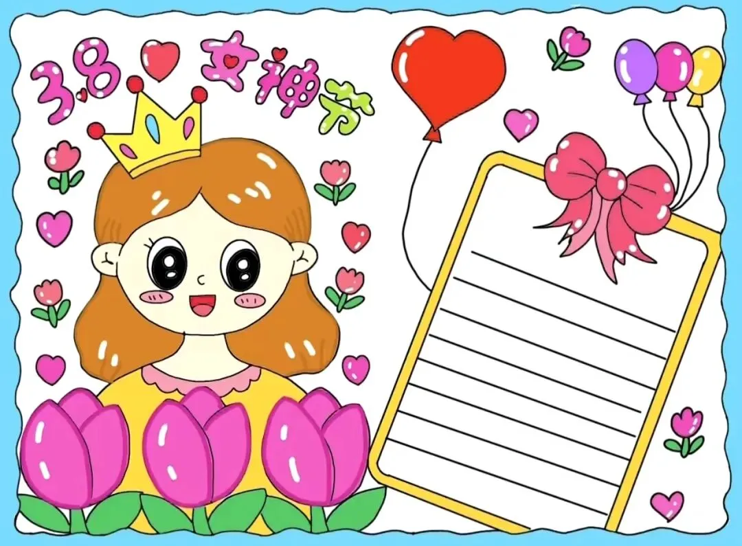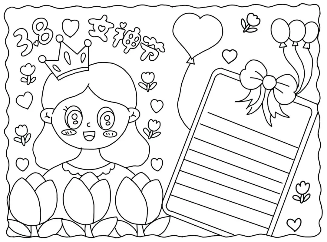 儿童创意画|女神节主题画(线稿图可打印)