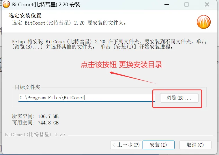 从上图可知,其默认会安装到C盘,但能通过“浏览”按钮来更换安装目录: