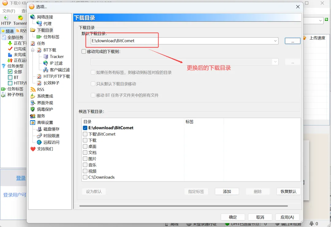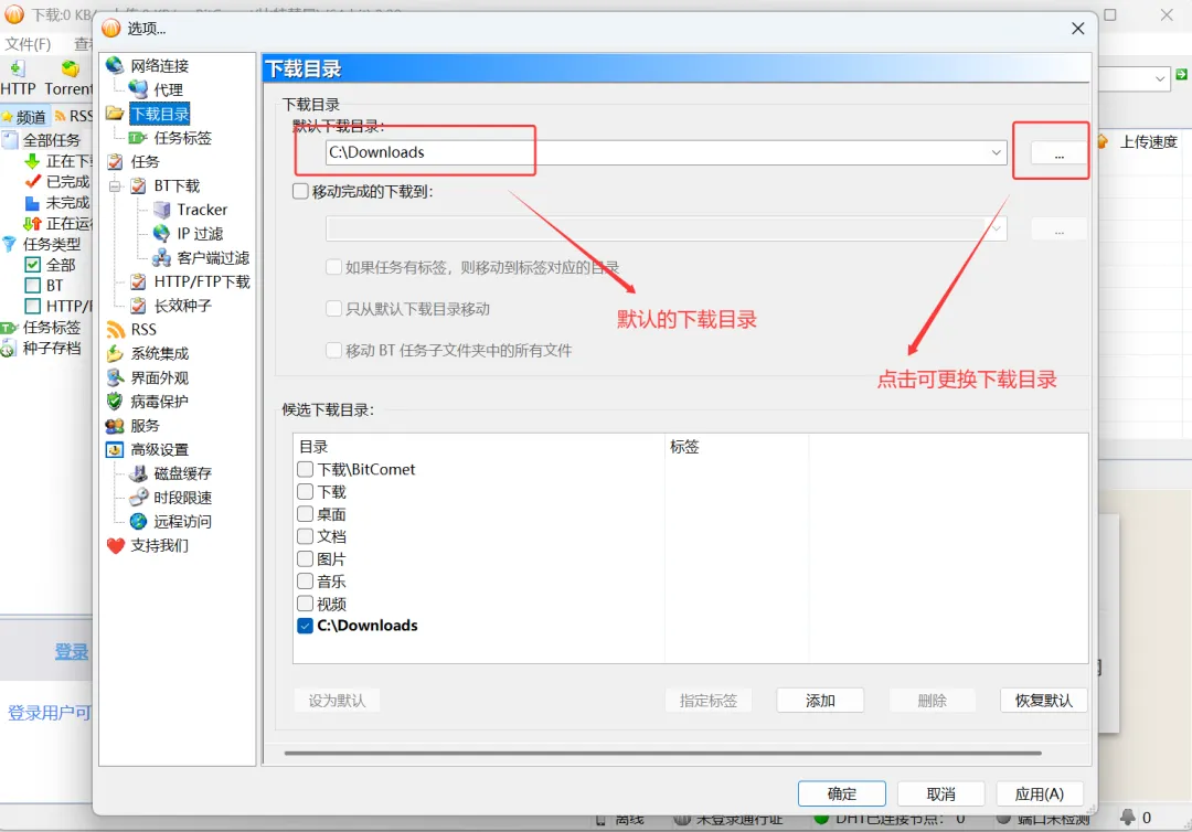 BitComet 与大多数软件类似,会默认将下载目录设置到C盘: