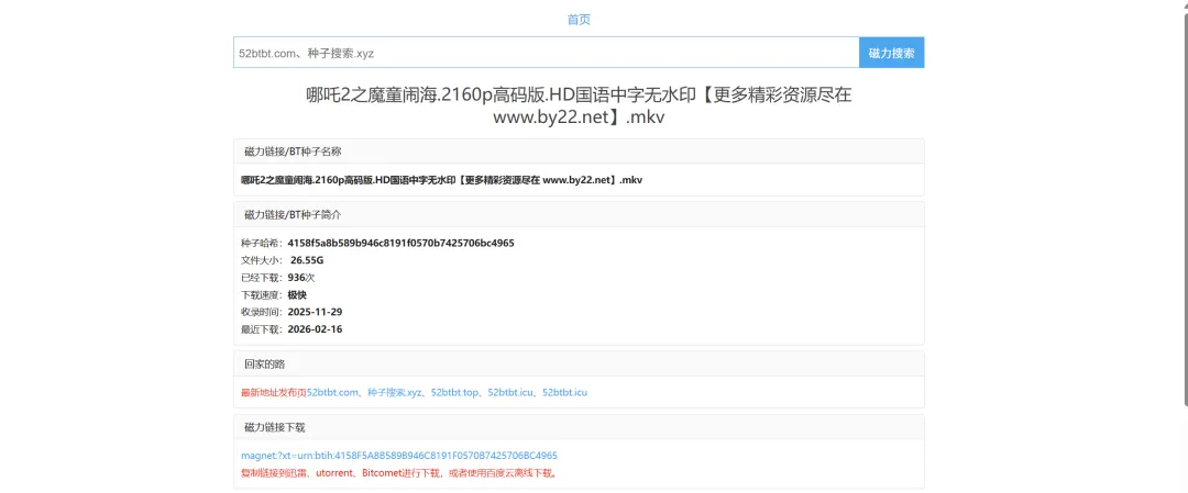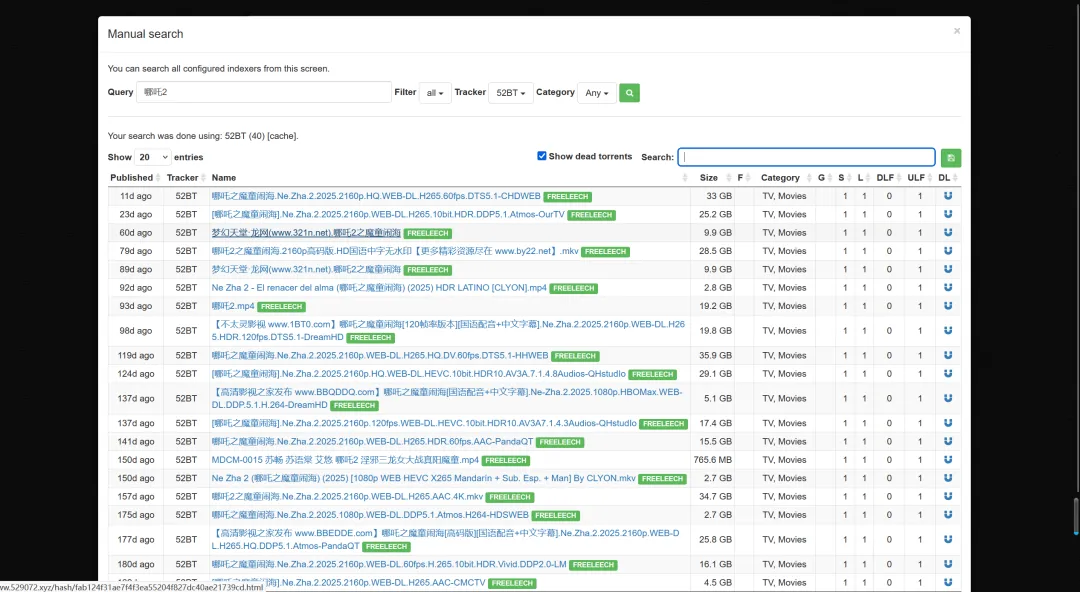 打开 Jackett 的主页,搜素某个资源,如“哪吒2”: