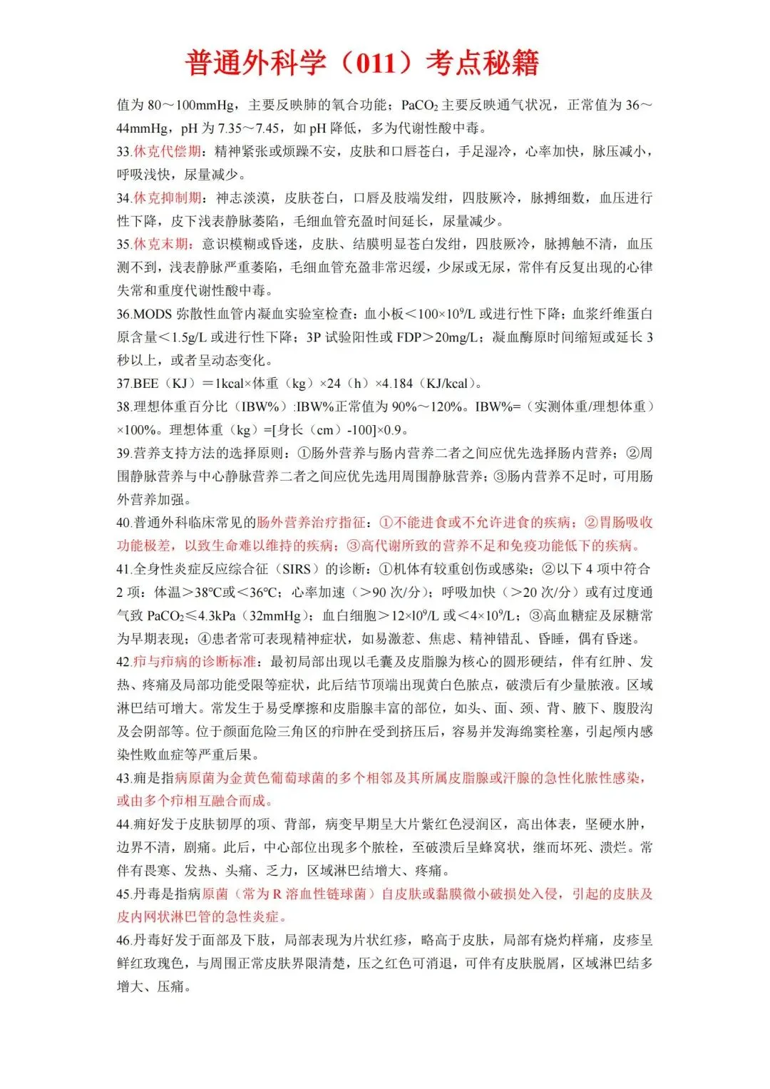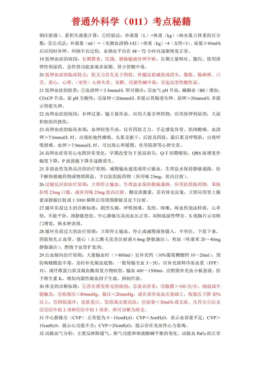 【免费下载打印.pdf】普通外科学高级职称011考前6页纸