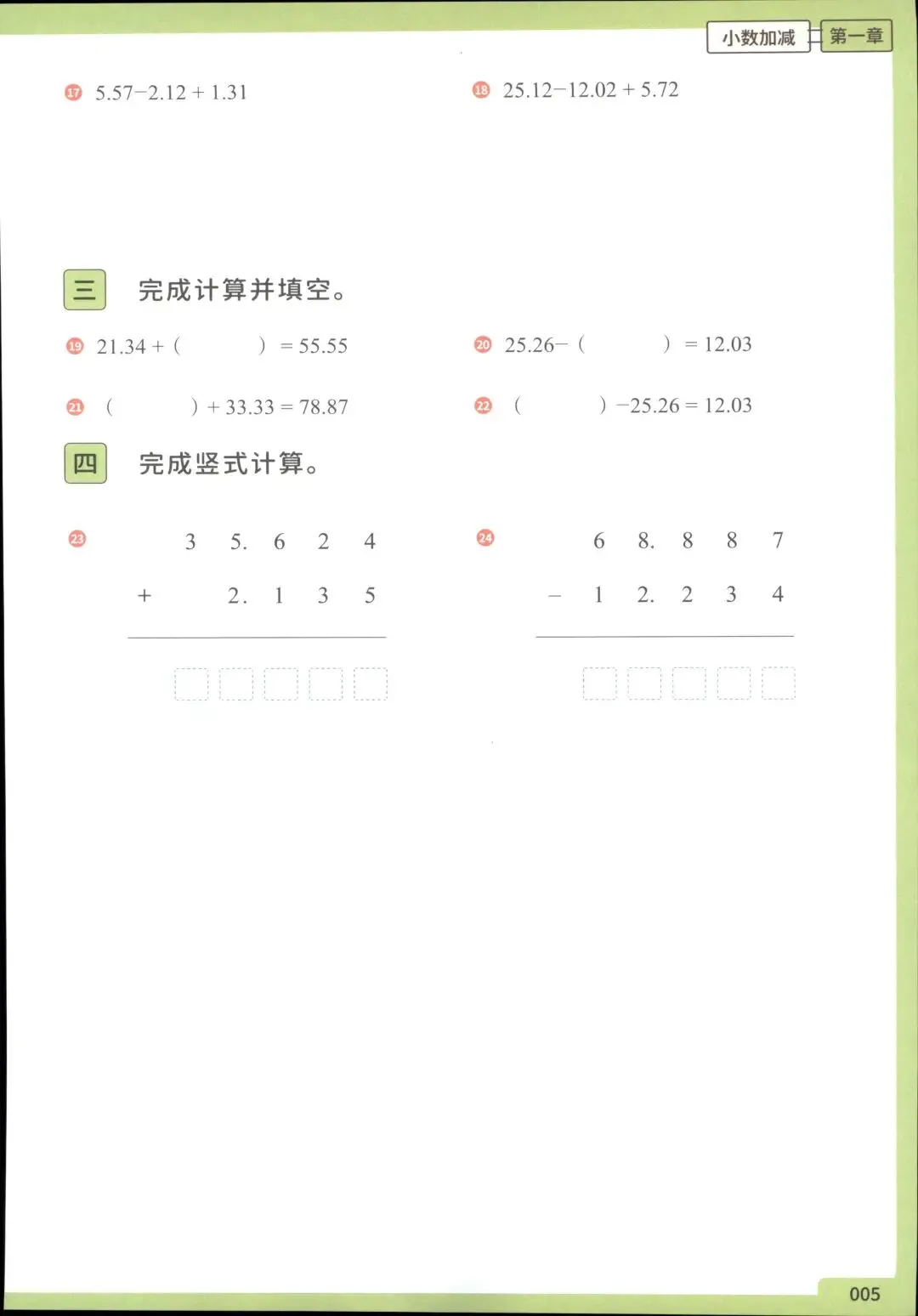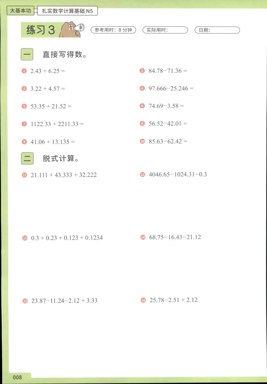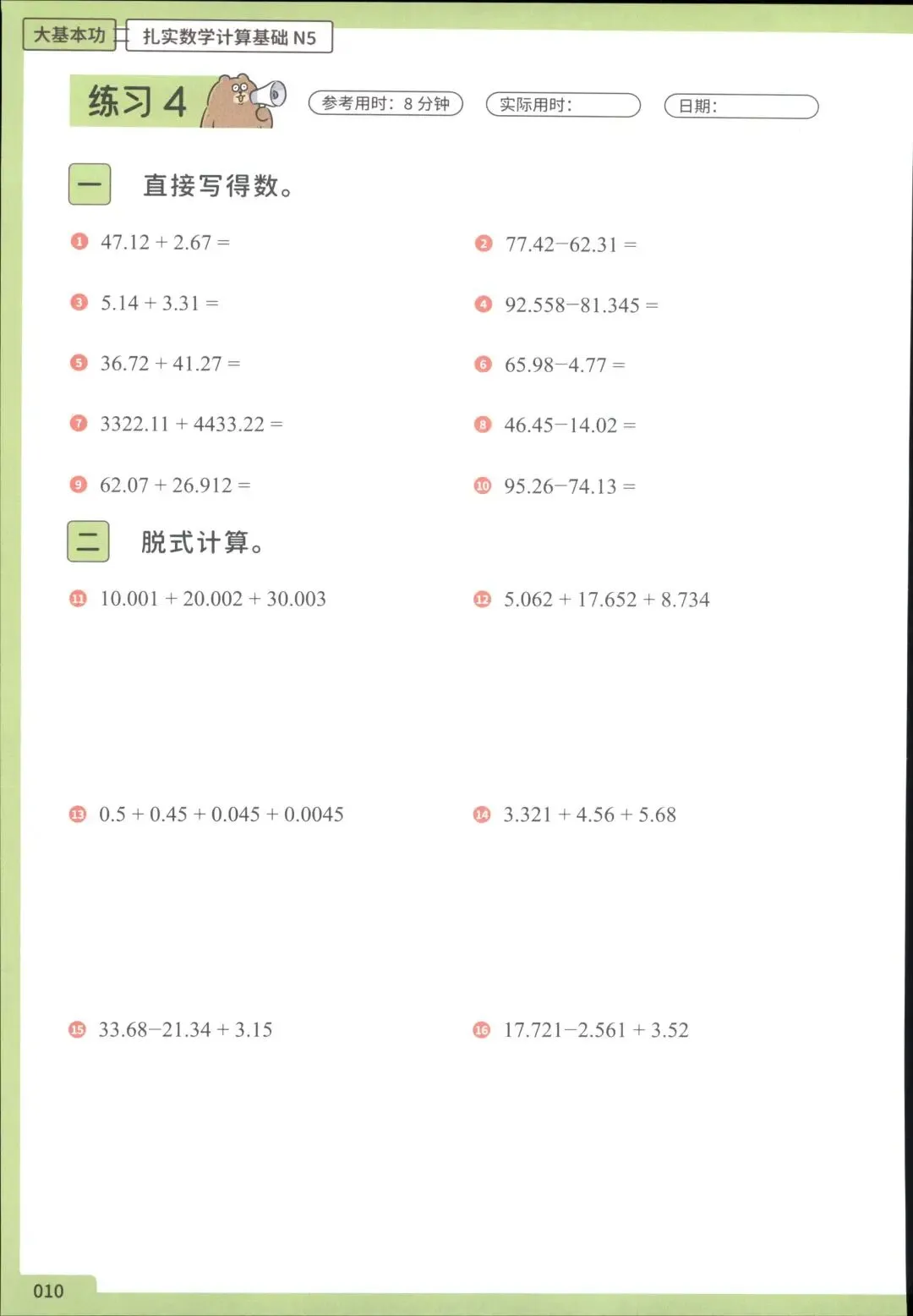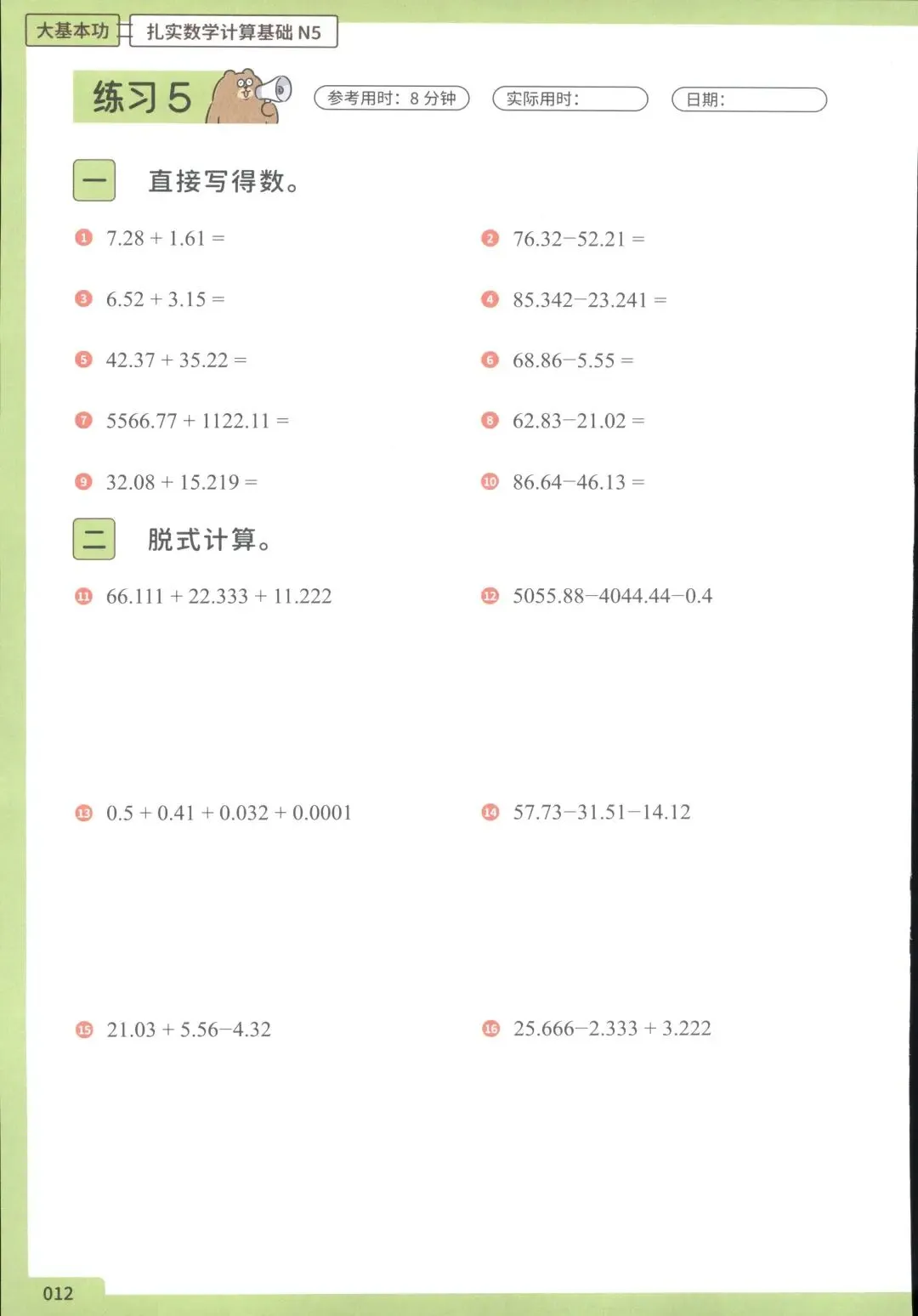 【数学教辅】五年级数学人教大基本功电子版可打印