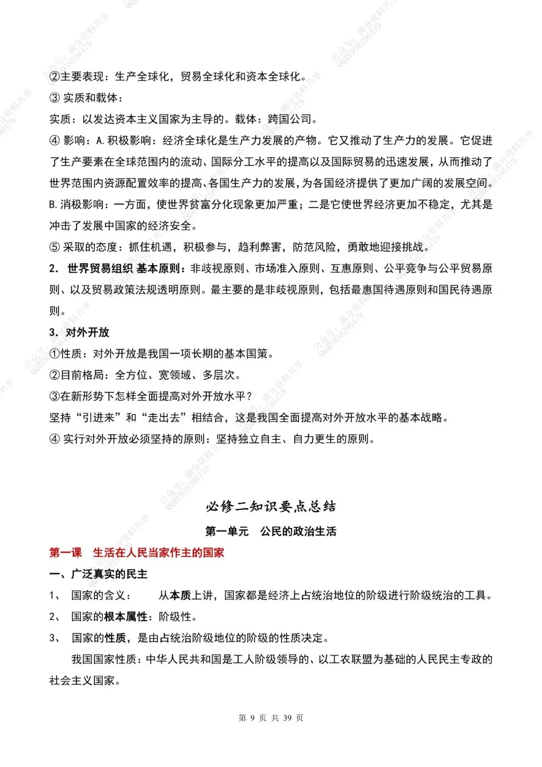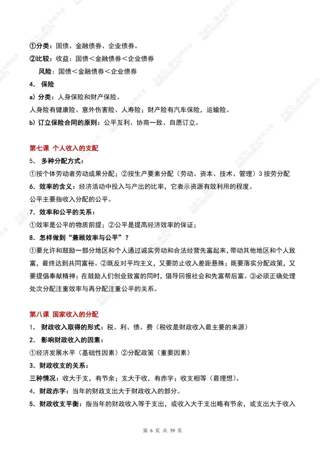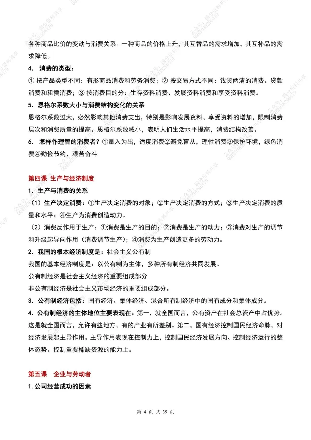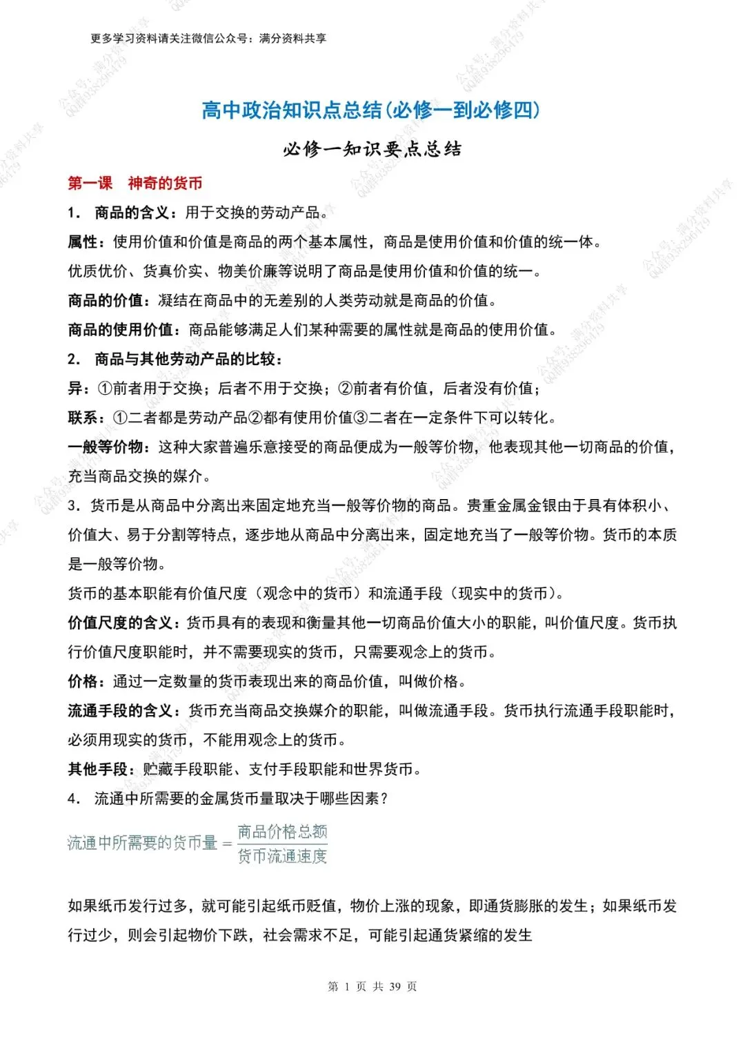 高中政治知识点总结(必修一到必修四)(pdf分享) 点击图片可观看高清版,文末有获取打印版方式 (完整版39页,部分展示) 领取完整电子版: ①:点一点右下角的“赞”和“在看”,感谢! ②:点击“关注”回复“高中资料”获取资料 点击下方“公众号”关注,可以进入主页哦!