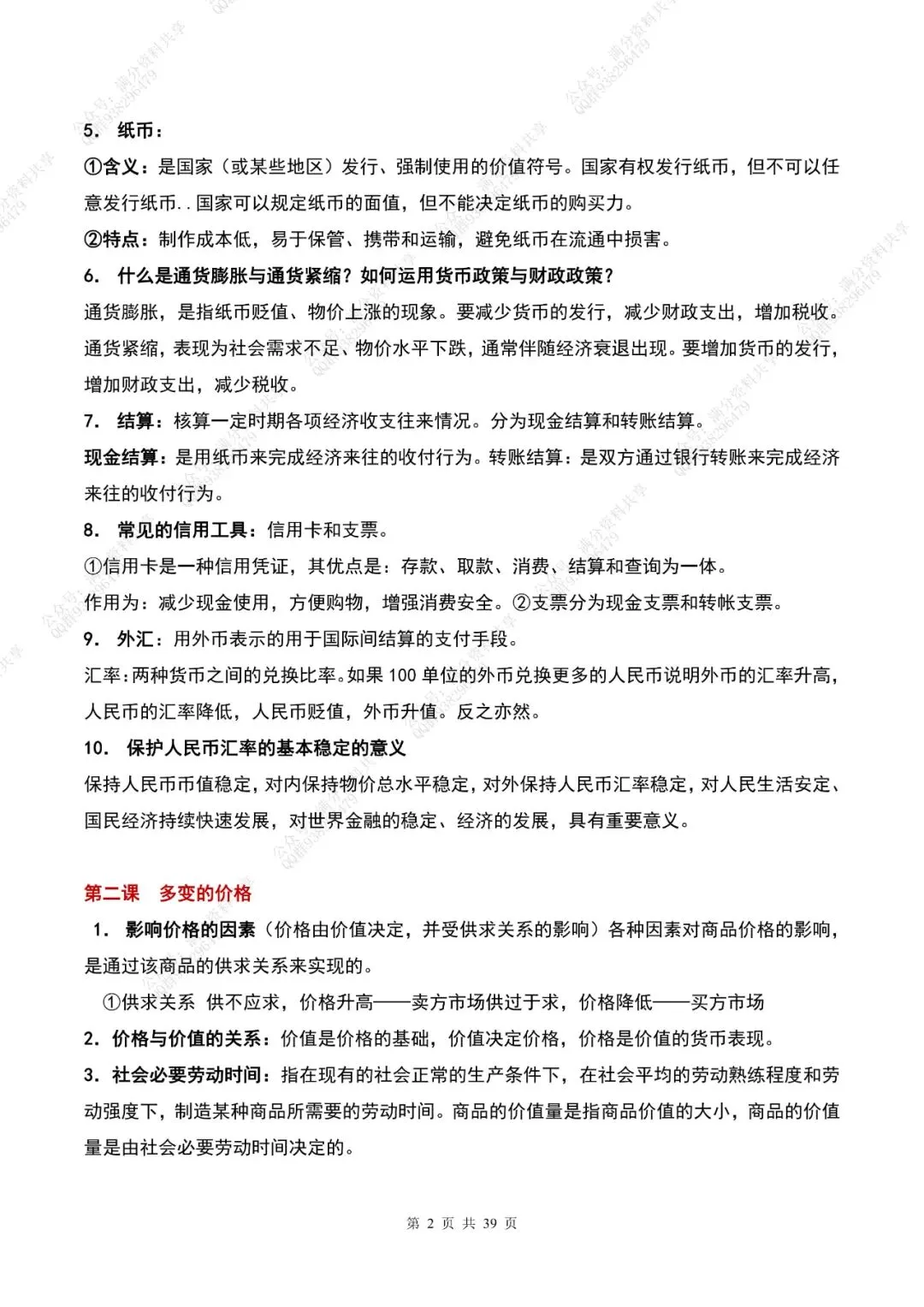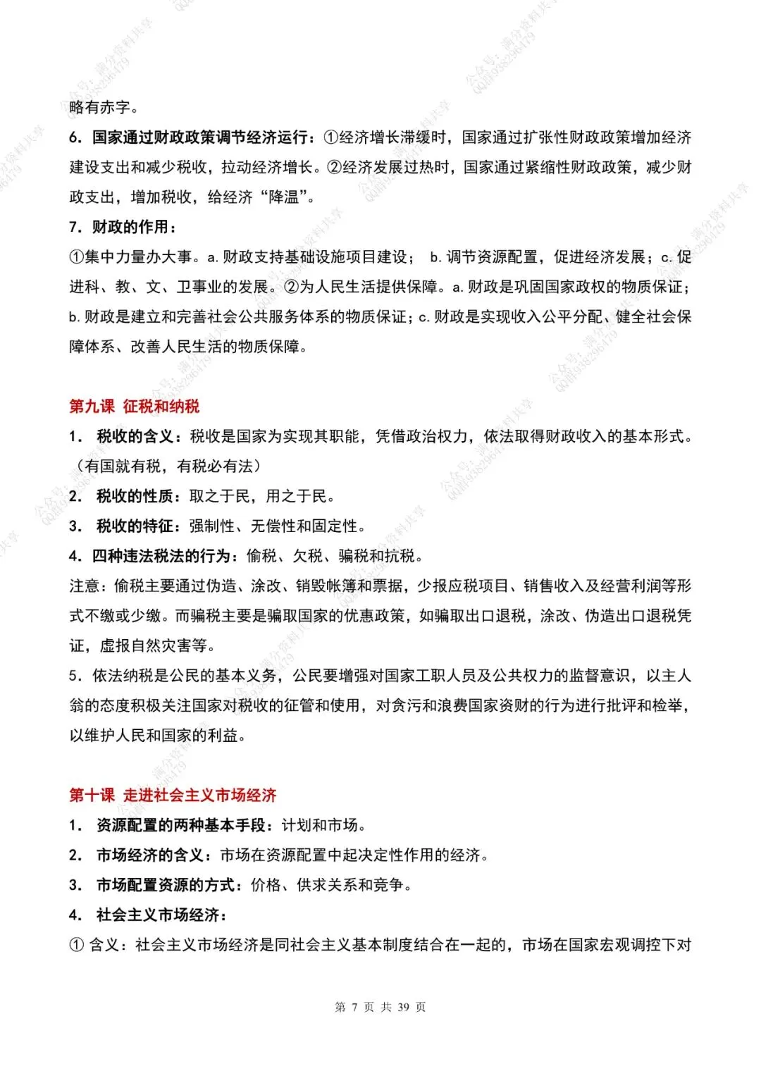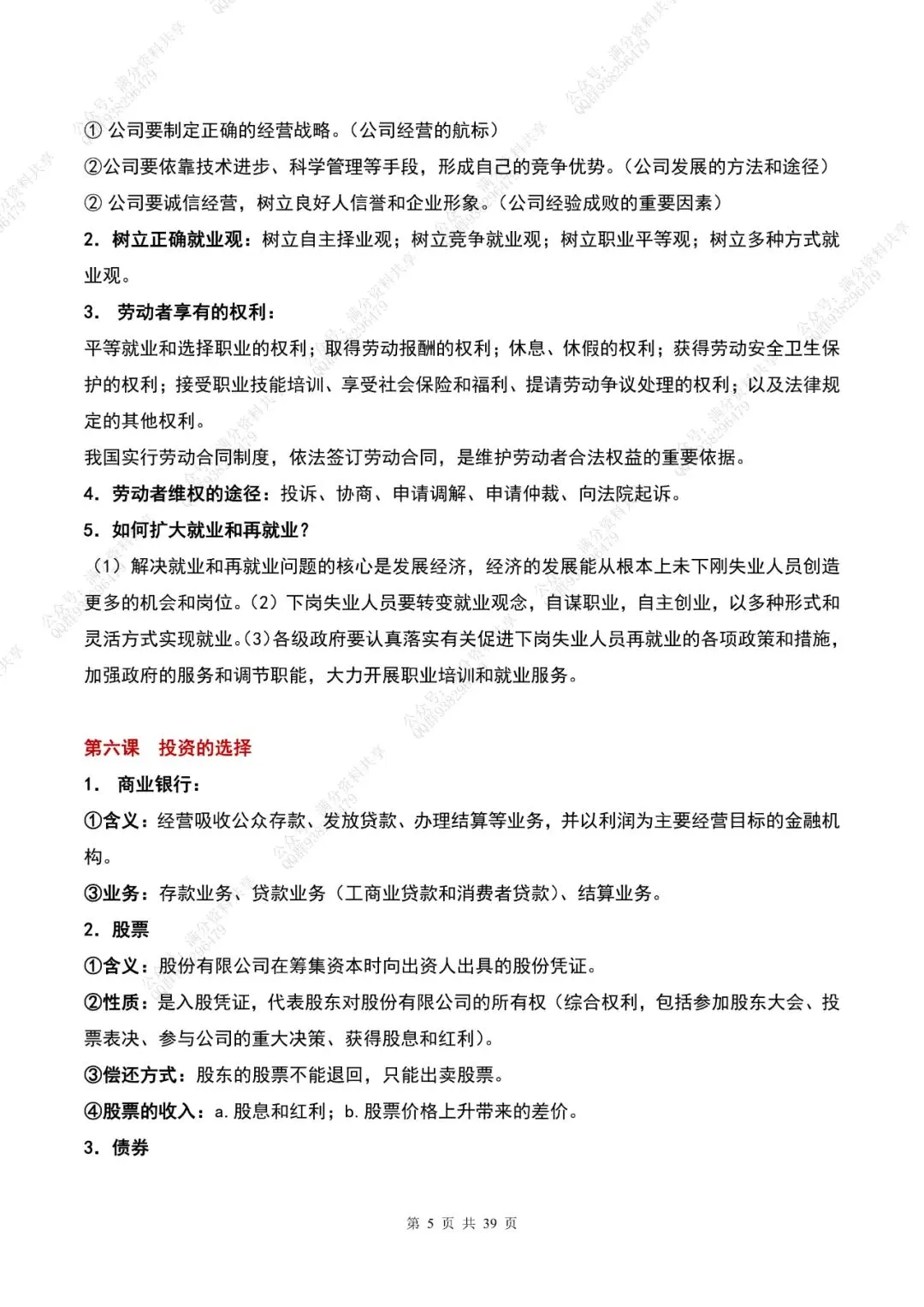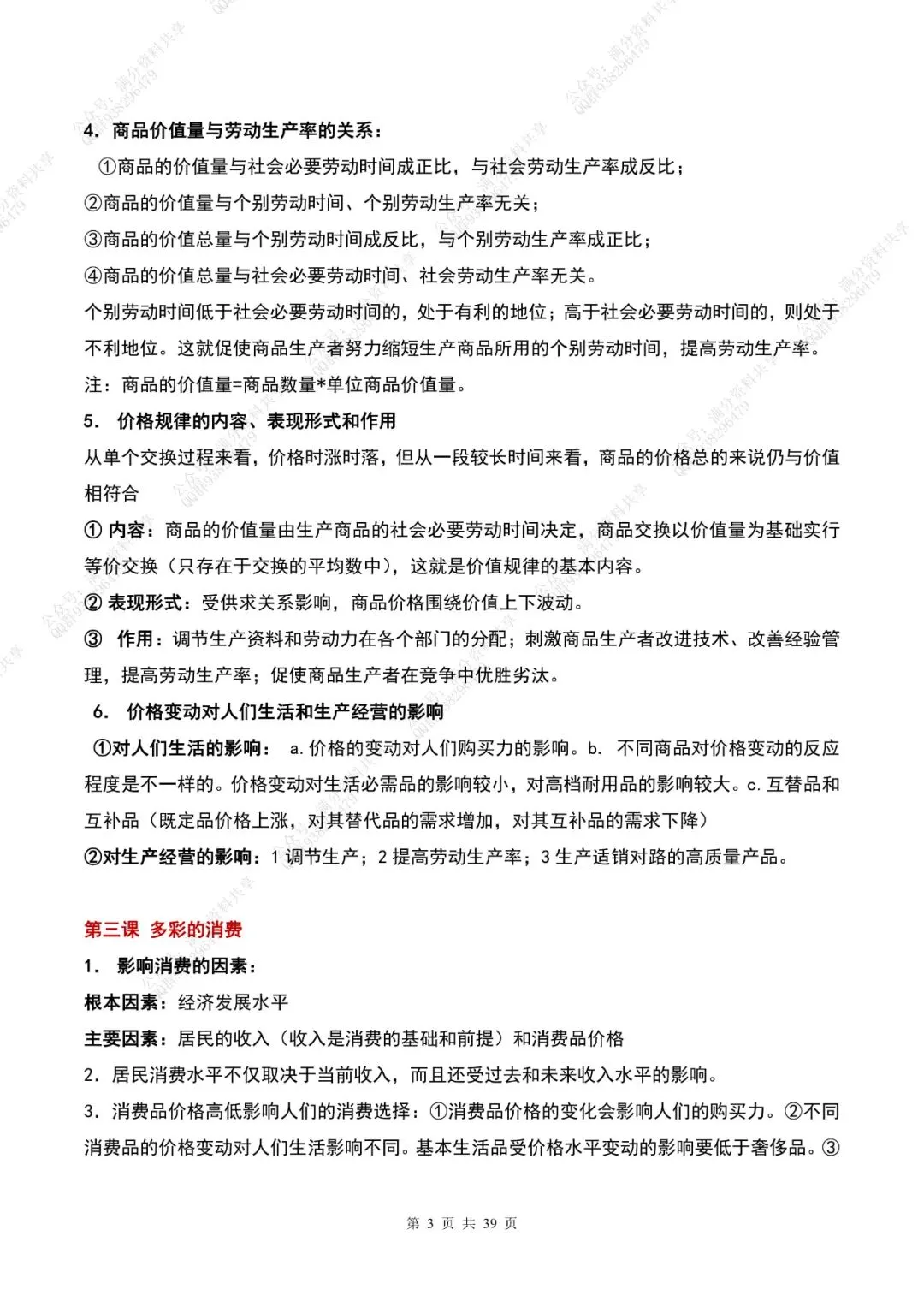 高中政治知识点总结(必修一到必修四)(pdf分享) 点击图片可观看高清版,文末有获取打印版方式 (完整版39页,部分展示) 领取完整电子版: ①:点一点右下角的“赞”和“在看”,感谢! ②:点击“关注”回复“高中资料”获取资料 点击下方“公众号”关注,可以进入主页哦!