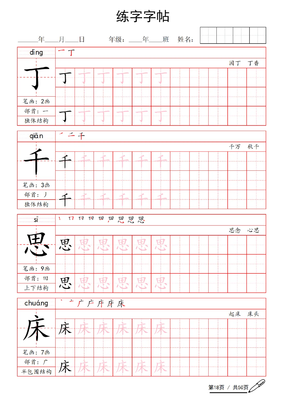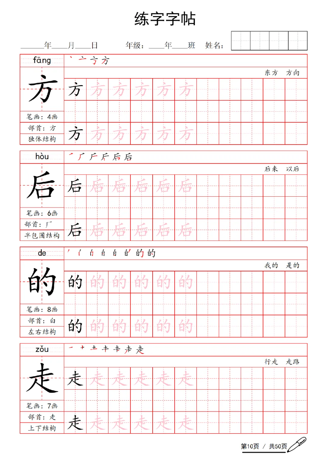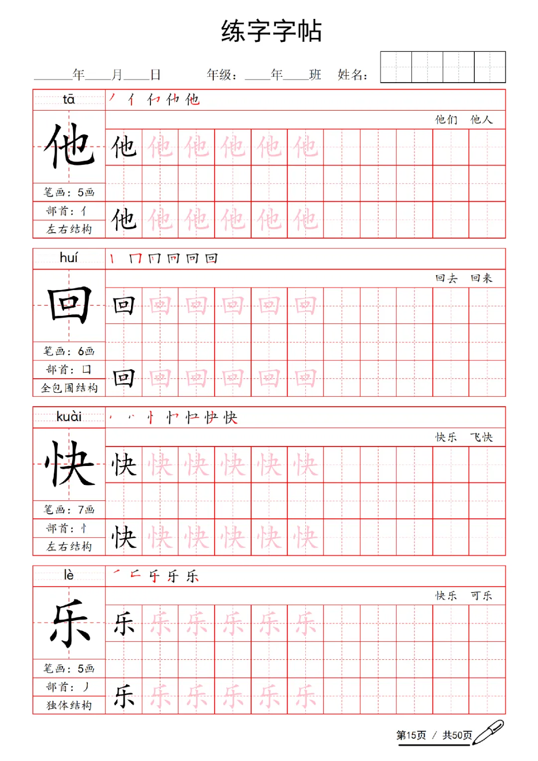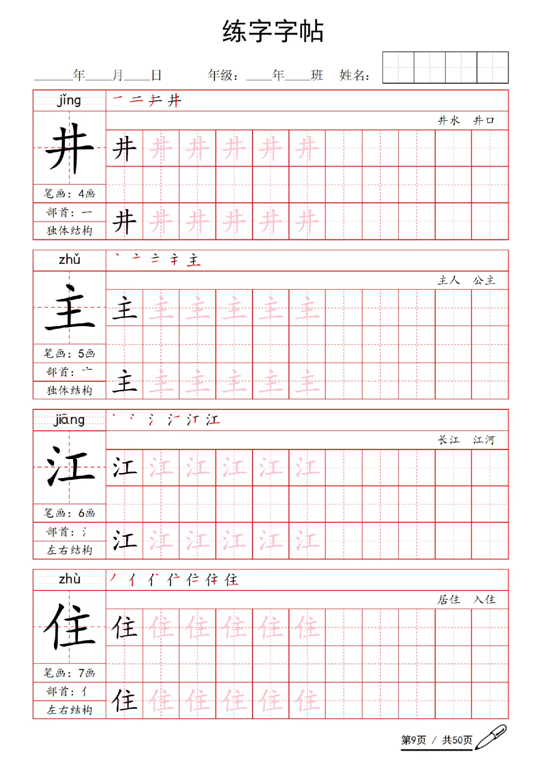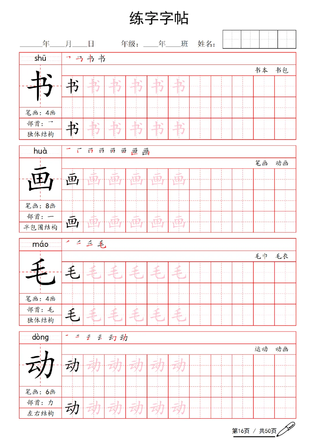 2026年一年级下册语文练字字帖(电子版可打印)