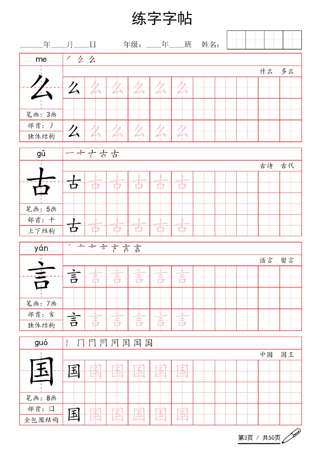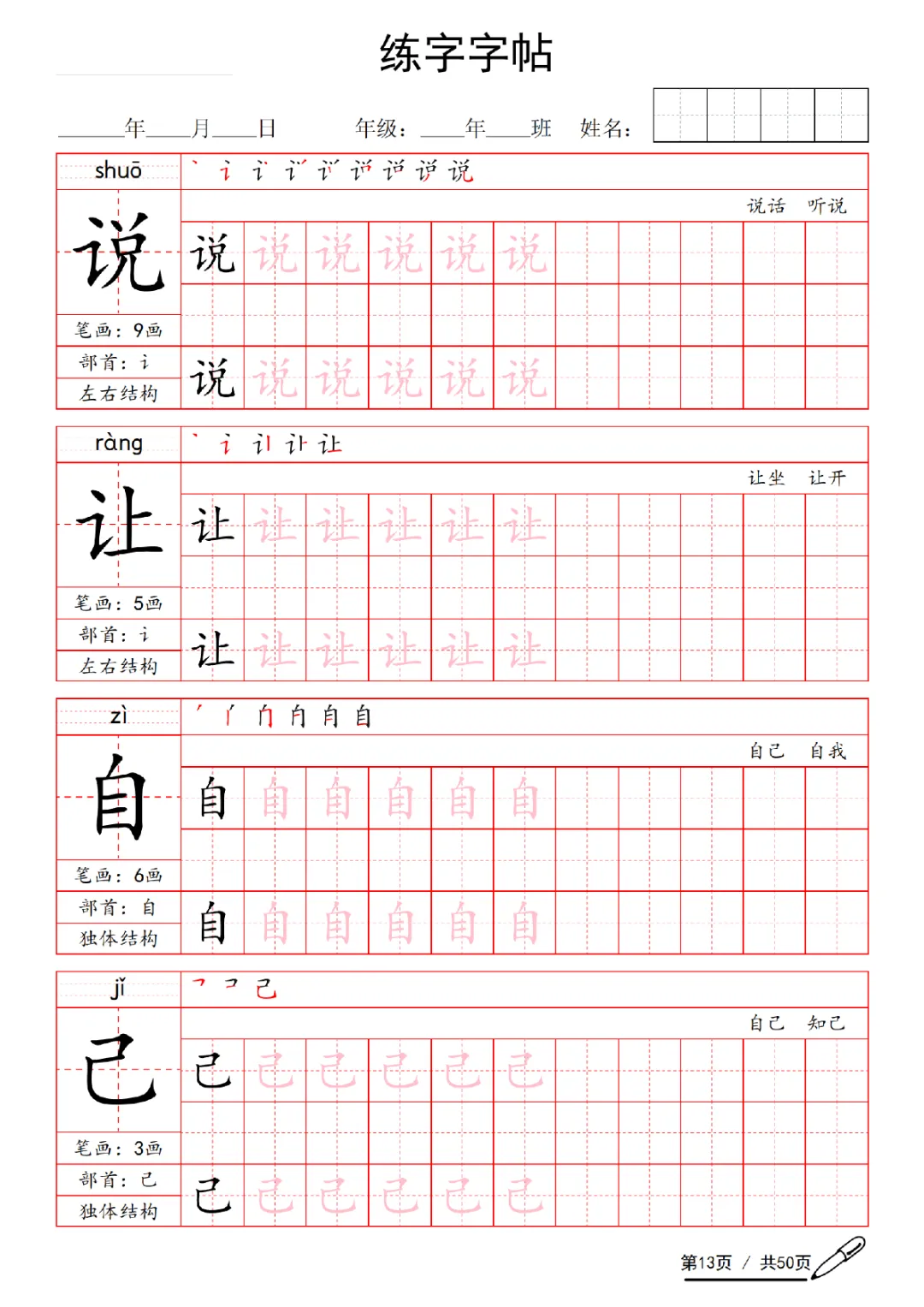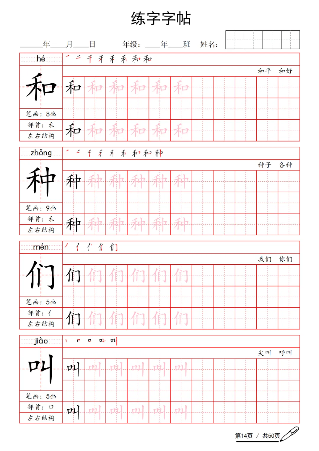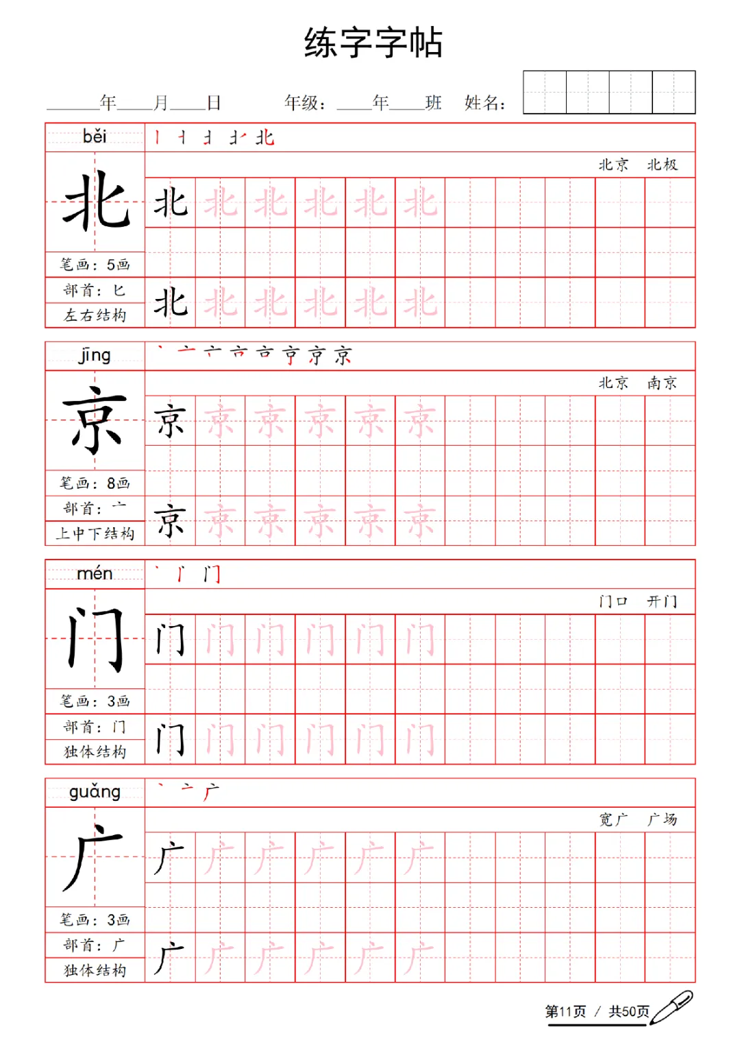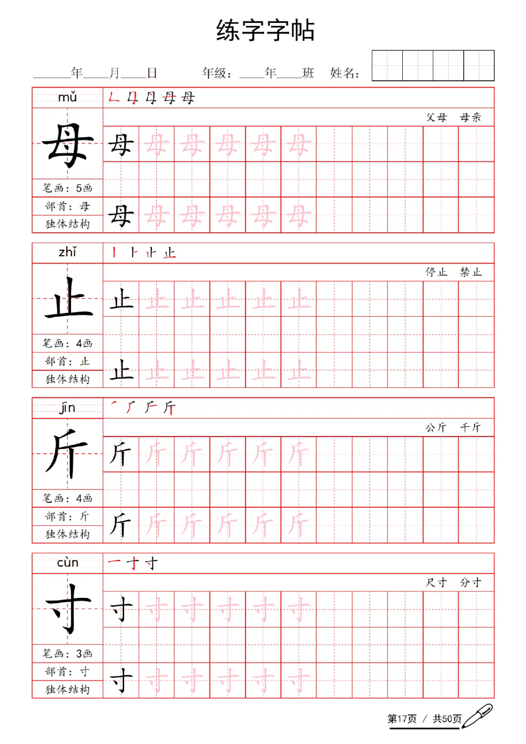 2026年一年级下册语文练字字帖(电子版可打印)